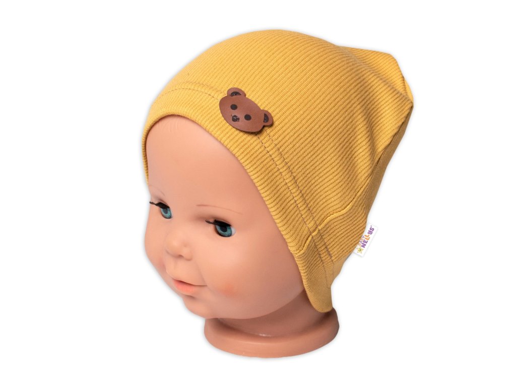 Baby Nellys Žebrovaná čepice Medvídek - hořčicová