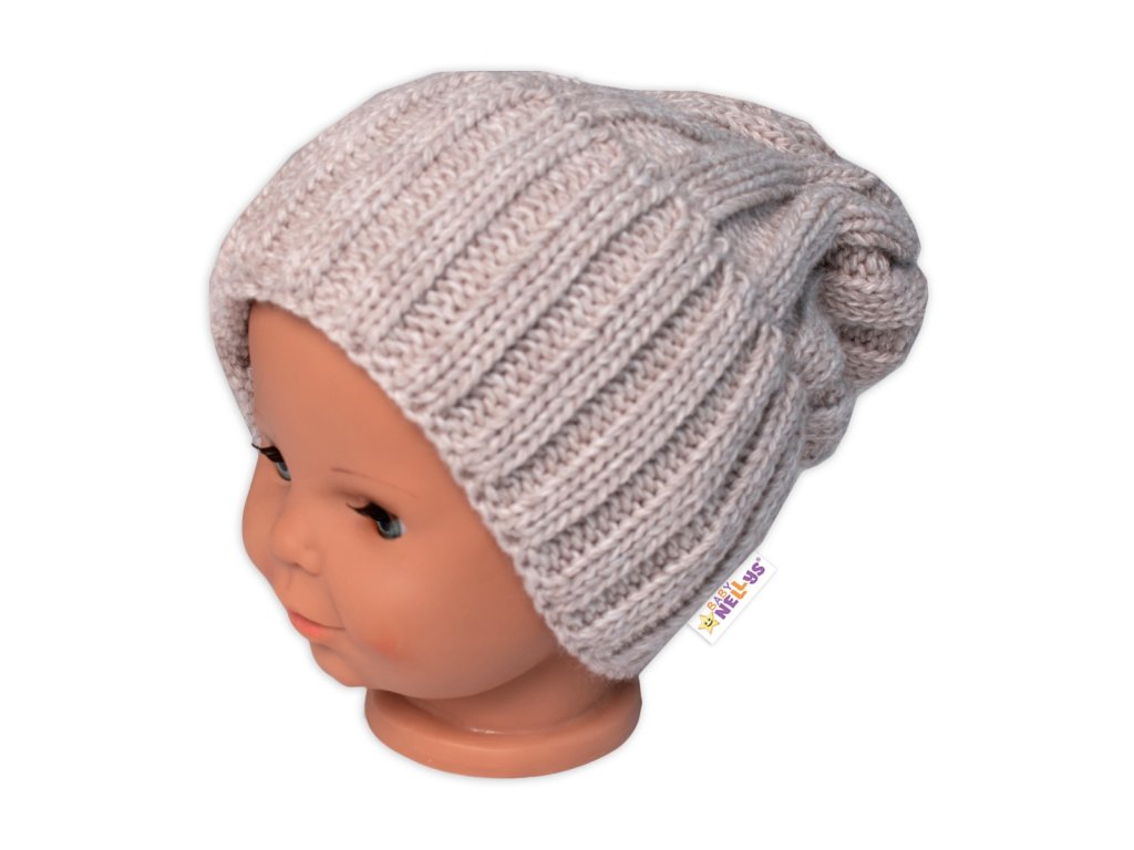 BABY NELLYS Zimná nadčasová čiapka Mom and Baby, béžová