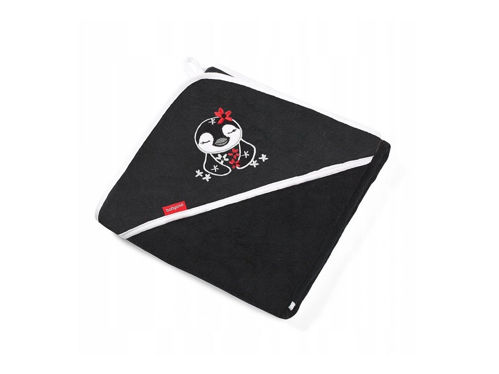 Bambusová osuška s kapucňou Pinguin 85x85cm - čierna