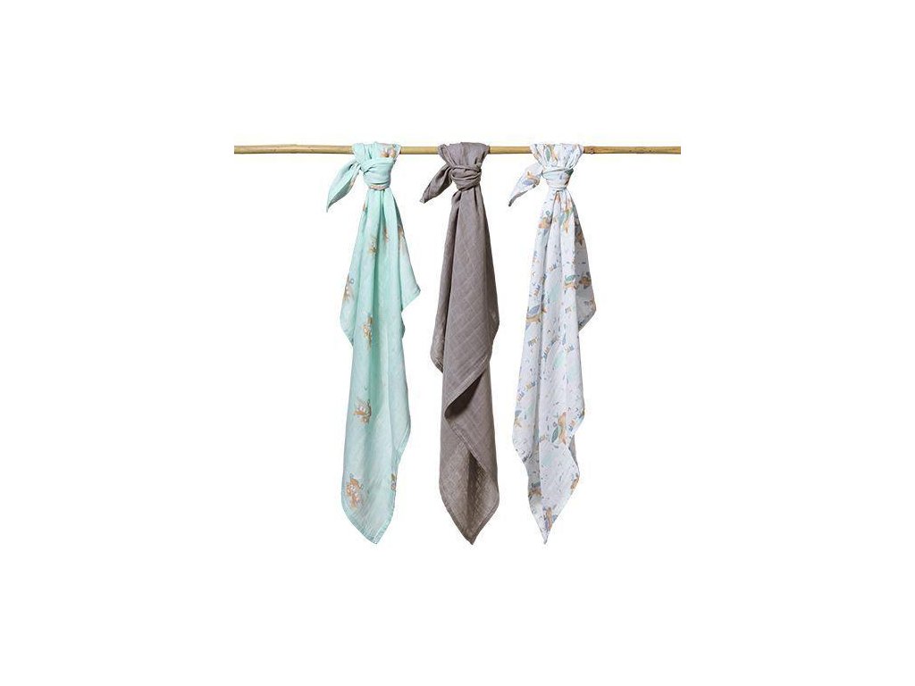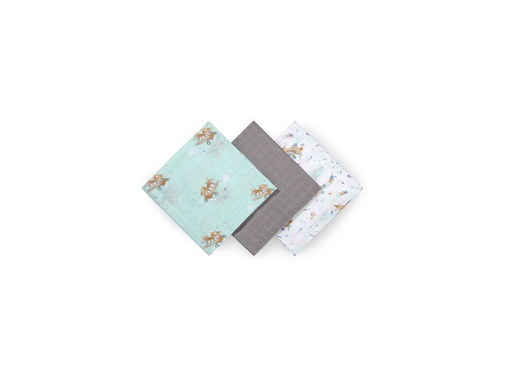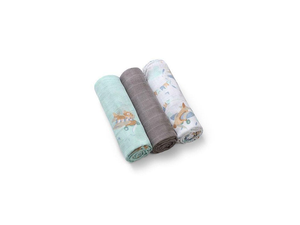 Bambusové detské plienky 3 ks, Lietadlá - mätové/šedé