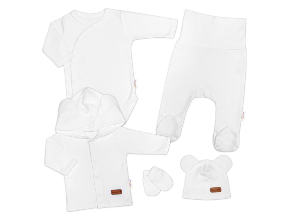 Bavlněná souprava pro miminko do porodnice 5D, Made with love, bílá