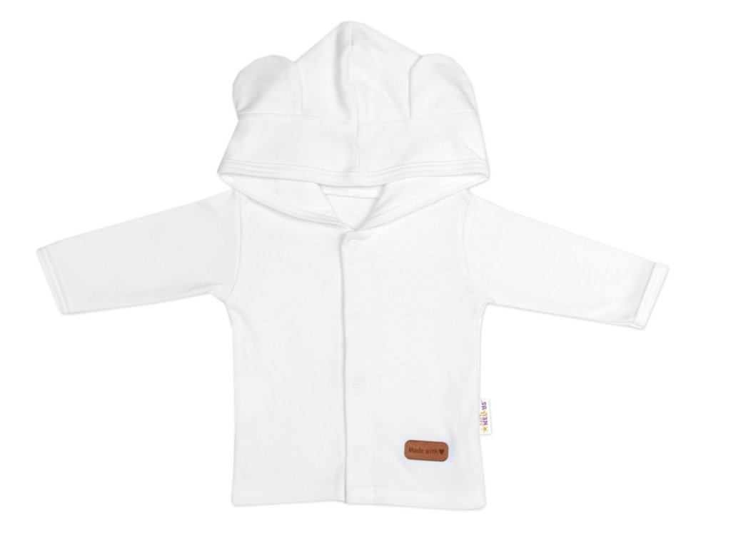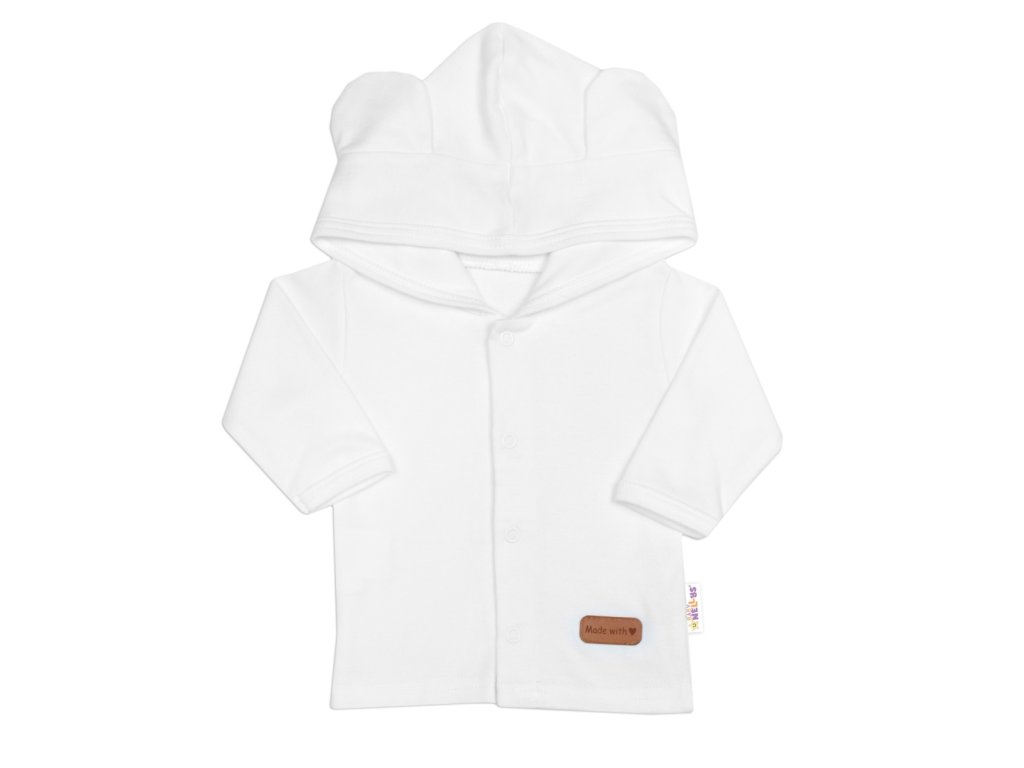 Bavlněná mikina s kapucí a oušky: Mikina, která udrží vaše miminko v teple a zároveň vypadá neodolatelně roztomile díky ouškům na kapuci. Kapuce je dvouvrstvá.