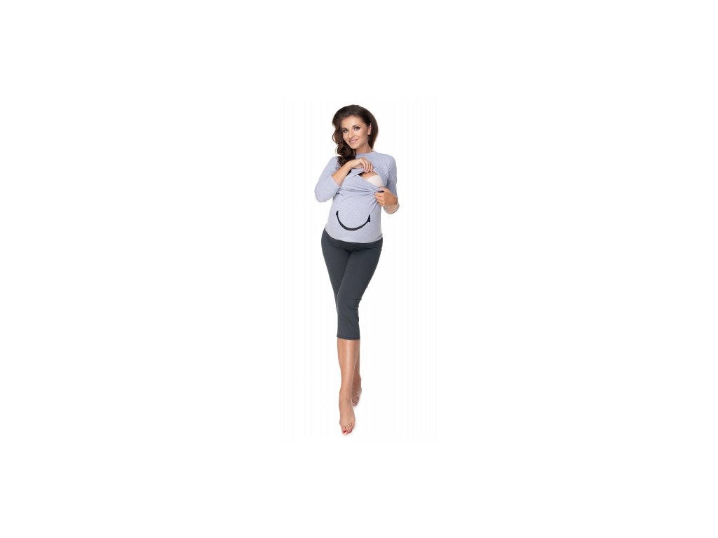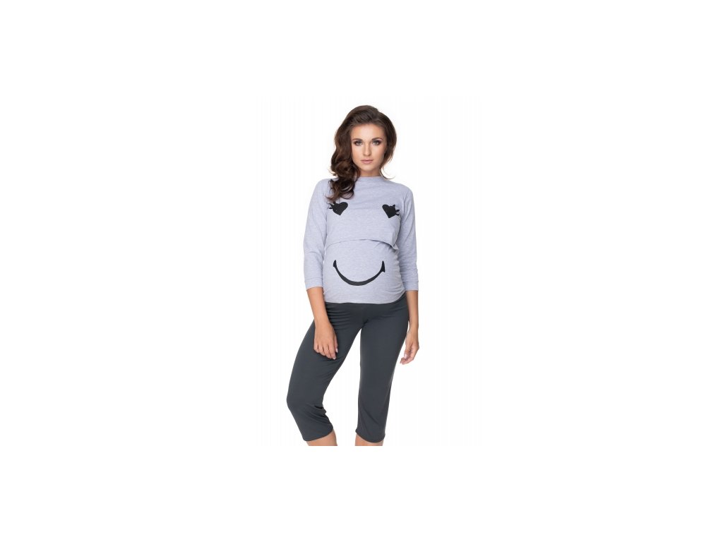 Be MaaMaa Těhotenské, kojící pyžamo 3/4 s dl. rukávem - šedá/grafit, S/M