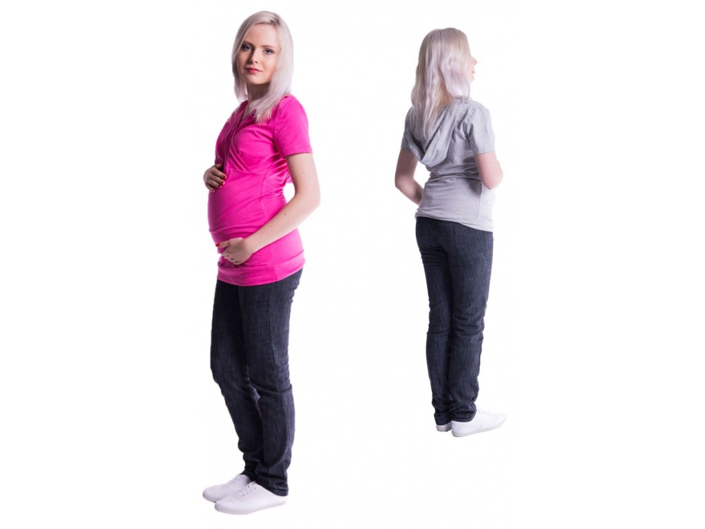 Těhotenské a kojící triko s kapucí, kr. rukáv.