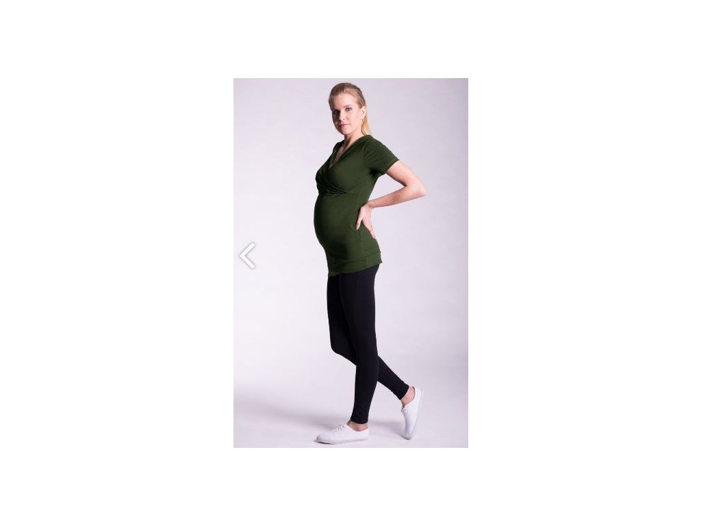 Be MaaMaa Těhotenské a kojící triko s kapucí, kr. rukáv - khaki