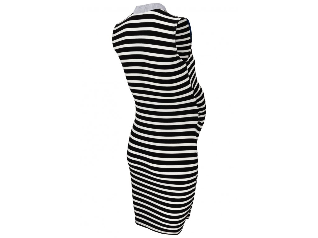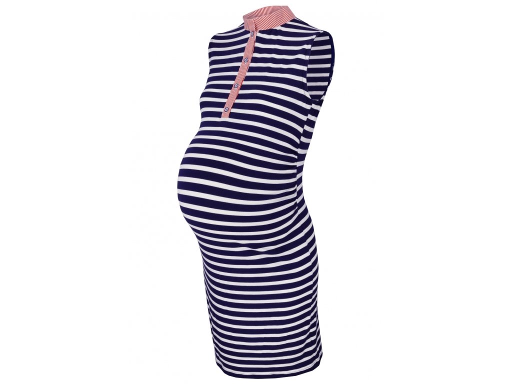 Be MaaMaa Těhotenské,kojící proužkované šaty se stojáčkem - ecru/granát