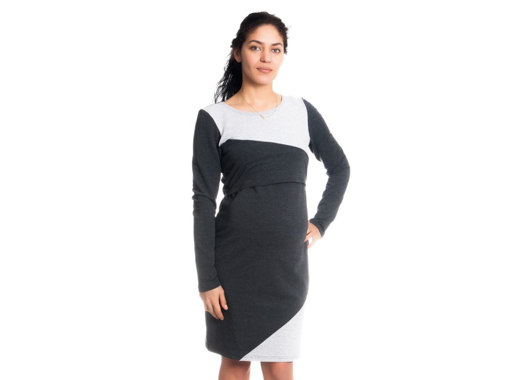 Be MaaMaa Těhotenské/kojící šaty Jane, dlouhý rukáv - grafitové