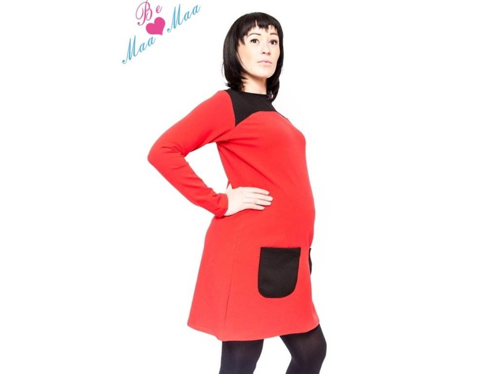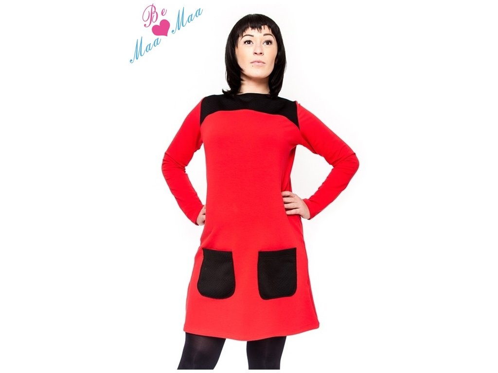 Be MaaMaa Těhotenské šaty/tunika LIZZA dl. rukáv - černá/červená