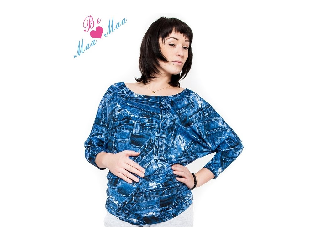 Be MaaMaa Těhotenské stylové triko, halenka s JEANS vzorem