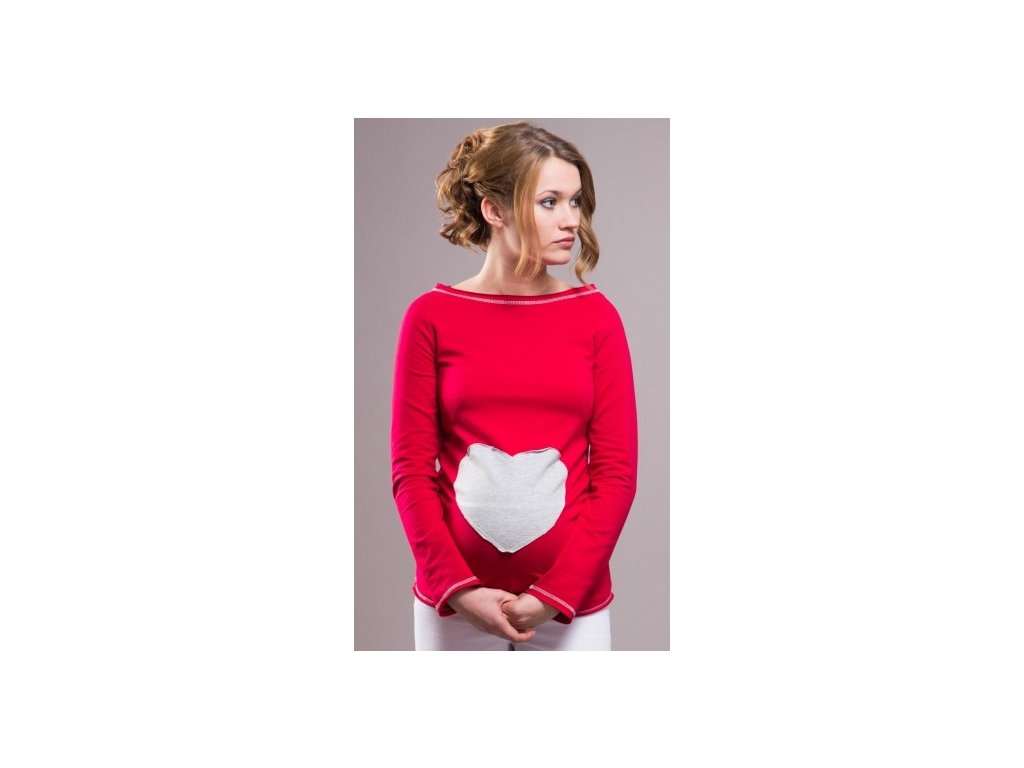 Be MaaMaa Těhotenské triko/halenka SRDCE dl. rukáv - červené