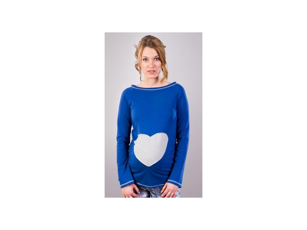 Be MaaMaa Těhotenské triko/halenka SRDCE dl. rukáv - tm.modrá