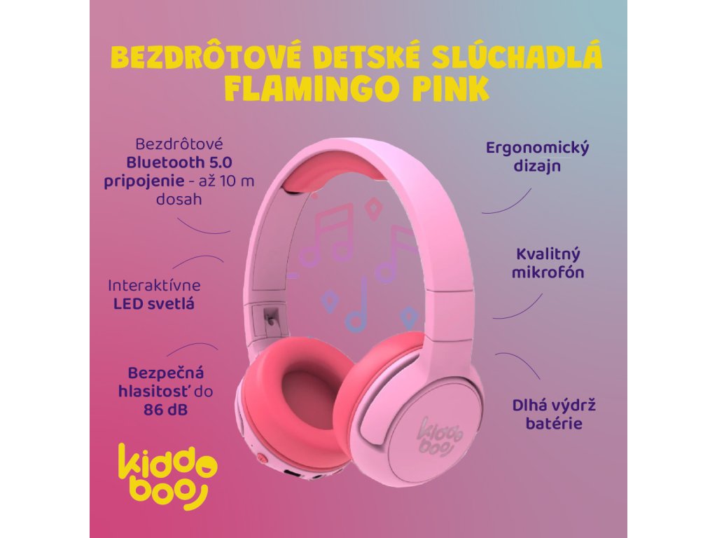 Bezdrôtové detské slúchadlá Flamingo Pink Bezdrôtové slúchadlá s obmedzením hlasitosti pre bezpečné počúvanie Hudba, štýl a bezpečnosť – všetko v jednom! Kiddoboo bezdrôtové detské slúchadlá Flamingo Pink sú navrhnuté pre deti od 6 rokov, ktoré milujú moderný vzhľad, kvalitný zvuk a zábavné funkcie. S obmedzenou hlasitosťou na 86 dB chránia sluch, zatiaľ čo LED osvetlenie dodá každej chvíli extra šmrnc.Čo robí Flamingo Pink tak výnimočnými? Bezdrôtové Bluetooth 5.3 pripojenie – až 10 m dosahInteraktívne LED svetlá – svetelné efekty na vonkajšej strane slúchadielBezpečná hlasitosť 86 dB – šetrné k detskému sluchuErgonomický dizajn – otočné a skladacie slúchadlá pre ľahké nosenieKvalitný mikrofón – ideálne na volania, videá či online výučbuDlhá výdrž batérie – až 20 hodín nepretržitého počúvaniaČo sa skrýva v balení? Slúchadlá Flamingo Pink s LED svetlom Nabíjací kábel USBNávod na použitieIdeálne ako darček pre deti a tínedžerov, ktorí milujú hudbu, štýl a technológie. S Flamingo Pink slúchadlami zaži každú skladbu ako dobrodružstvo!