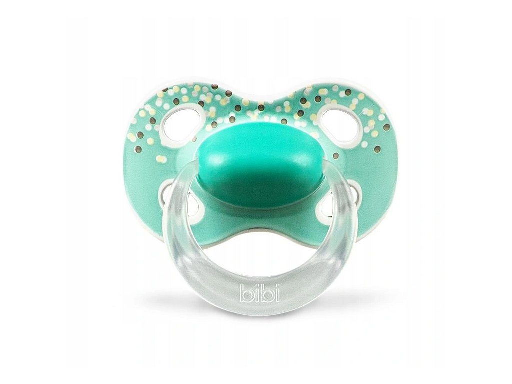 BIBI Silikónový cumlík natural, Bodky, 6 - 16 m, tyrkysový