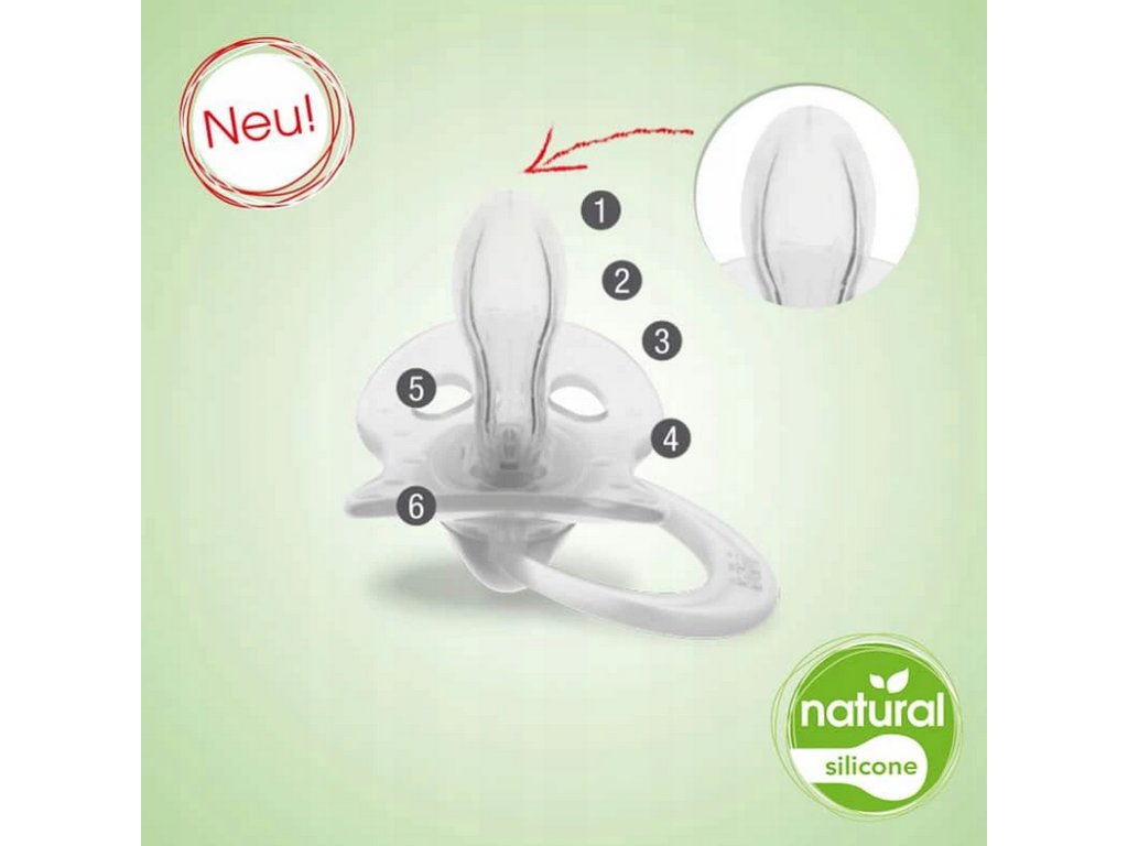 - Výstupky na krúžku cumlíka znižujú začervenanie kože.