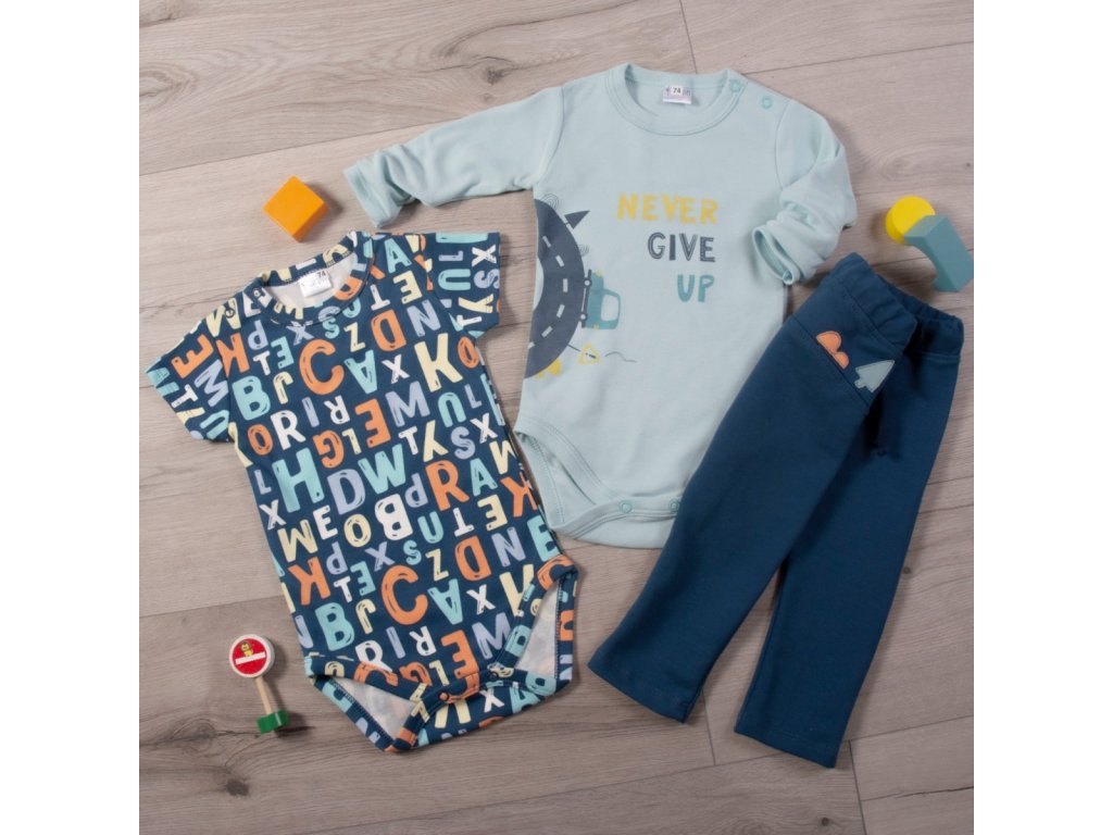 Body dl. rukáv, body kr. rukáv, tepláčky,3D sada K-Baby - Písmenka, modrá