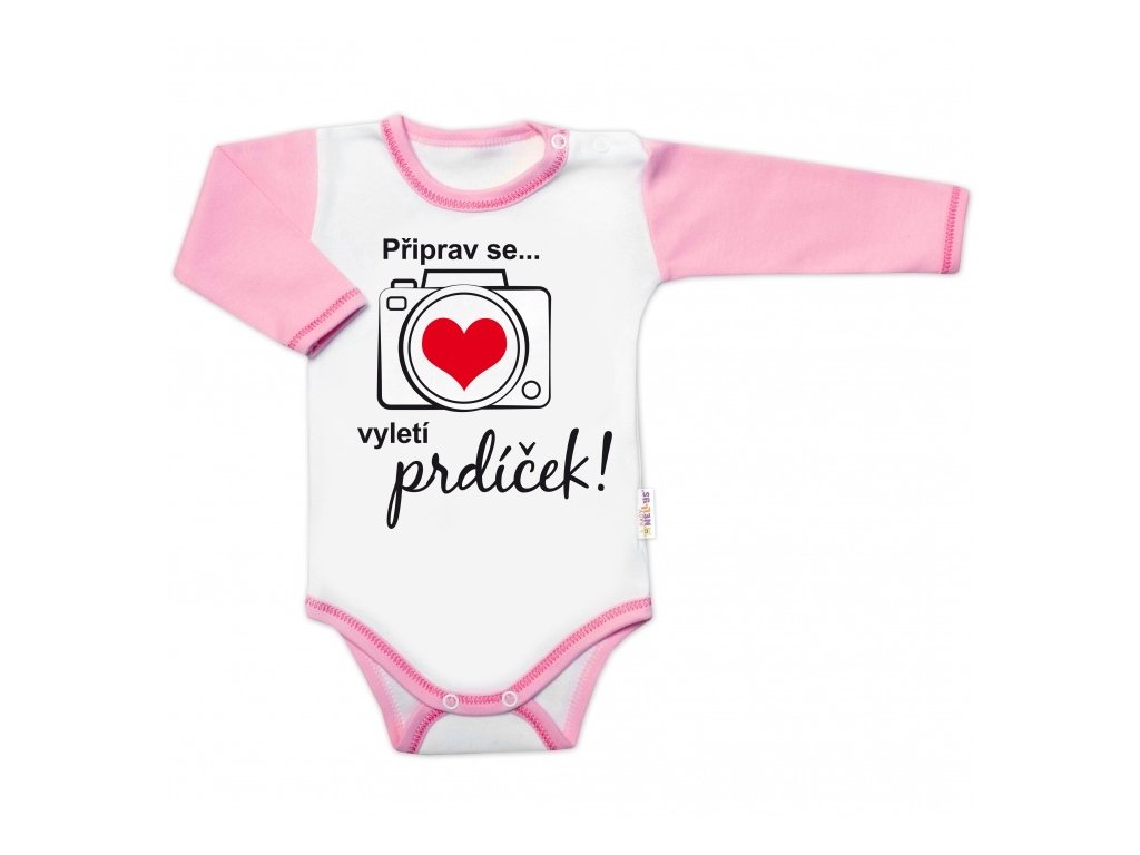 Body dlouhý rukáv s vtipným textem Baby Nellys, Připrav se....vyletí prdíček, holka