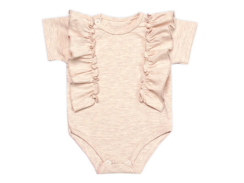 Body kr. rukáv s volánkem, bavlna, zapínání vzadu, Emily Mrofi, béžový melírek