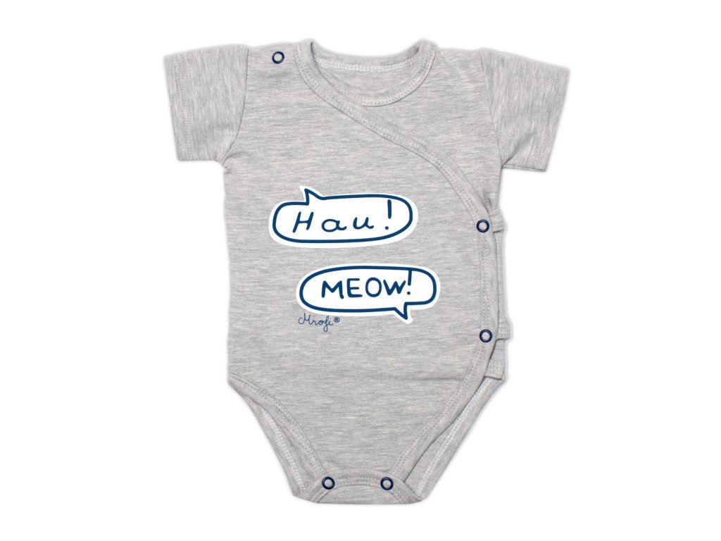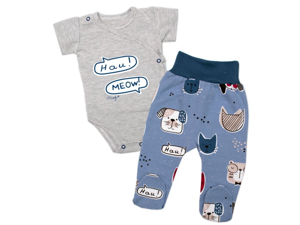Body kr. rukáv zap. bokem + polodupačky Pejsek a Kočička Mrofi, šedá/modrá