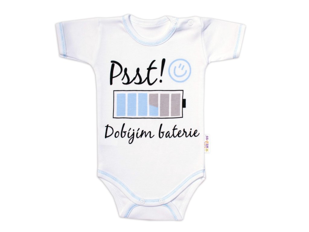Body krátký rukáv s vtipným textem Baby Nellys, Psst! Dobíjím baterie, kluk