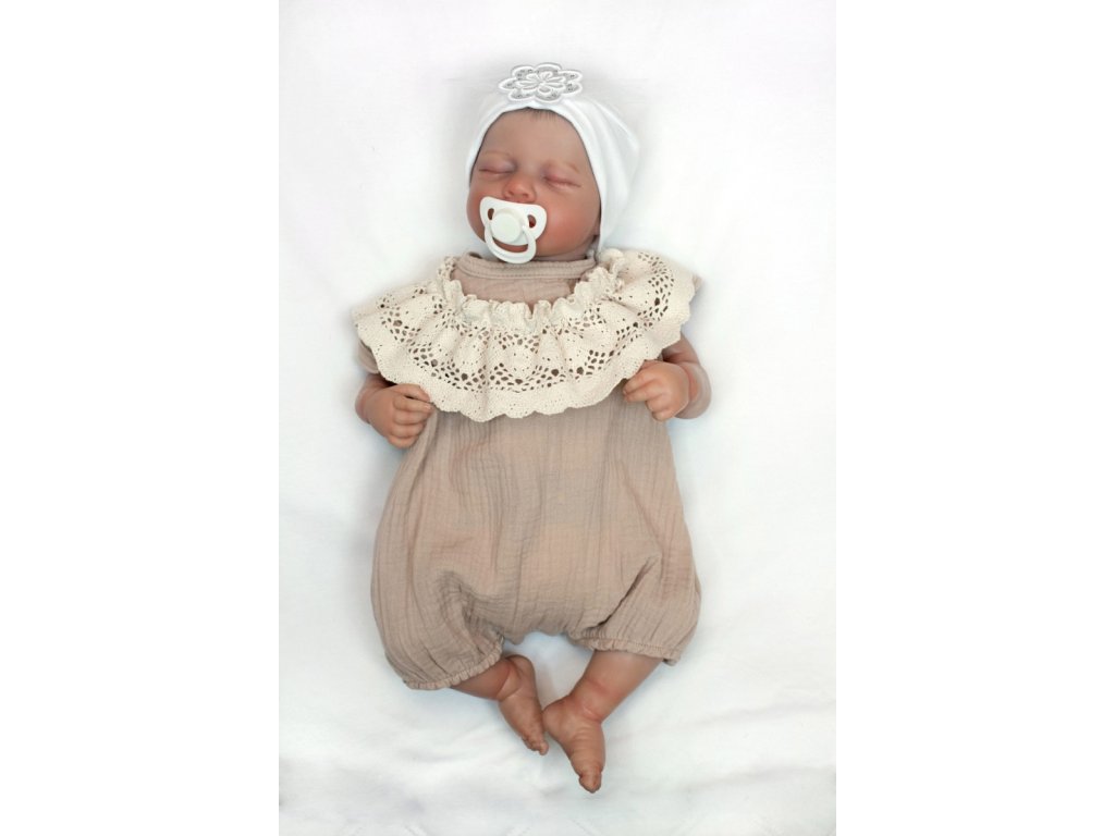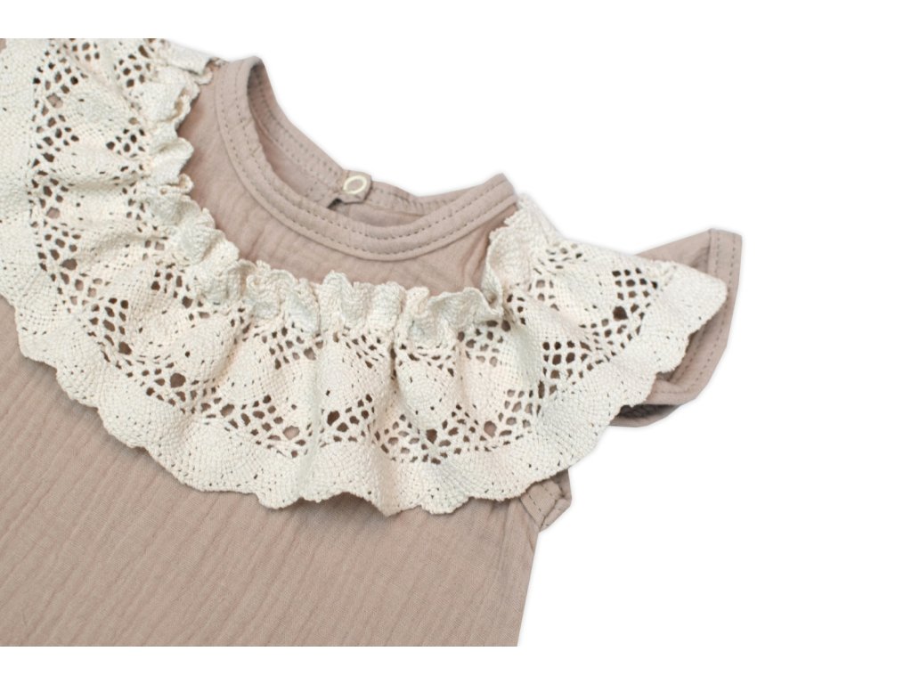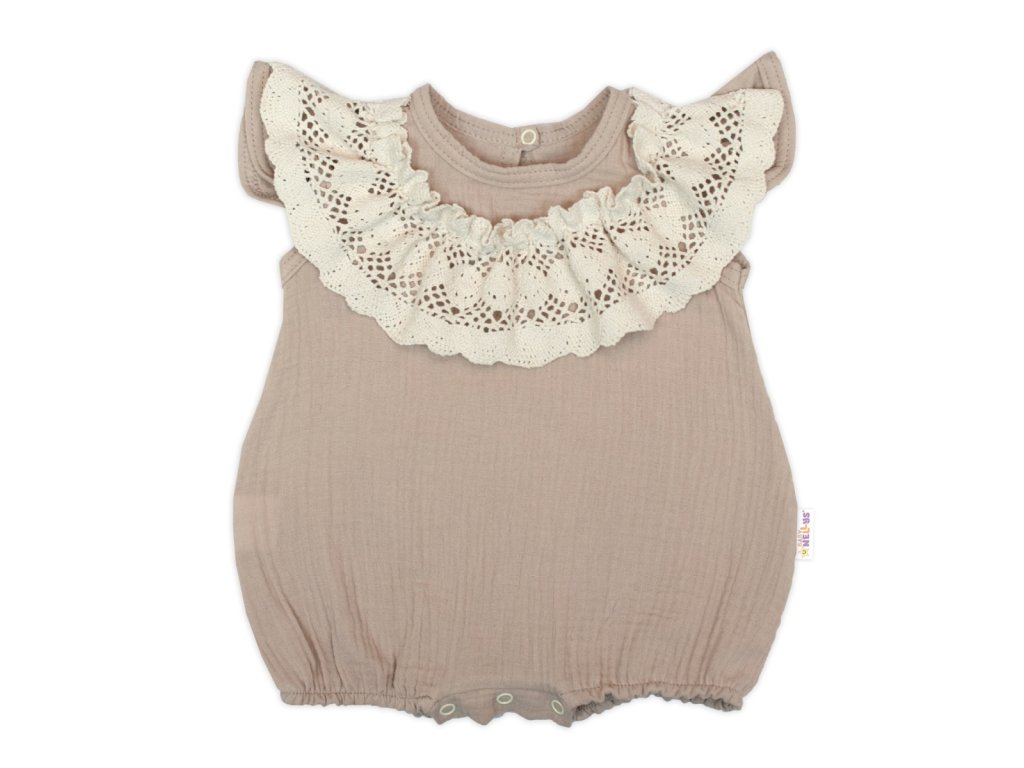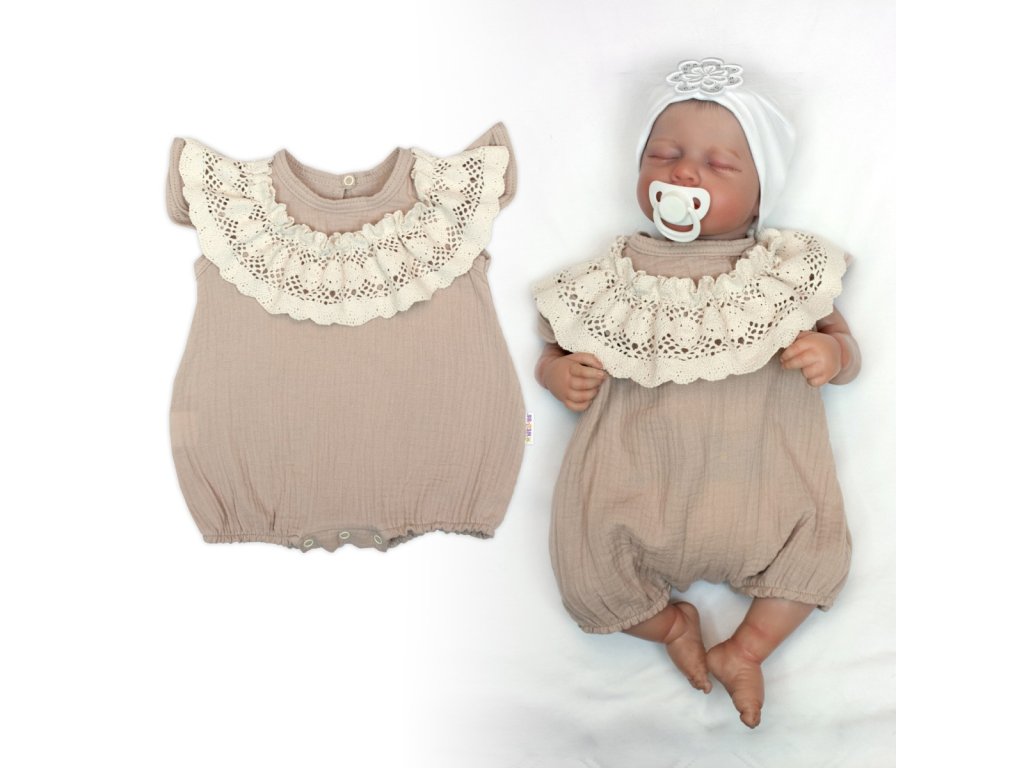 Body s nohavičkami, mušelín s krajkou BOHO - béžové