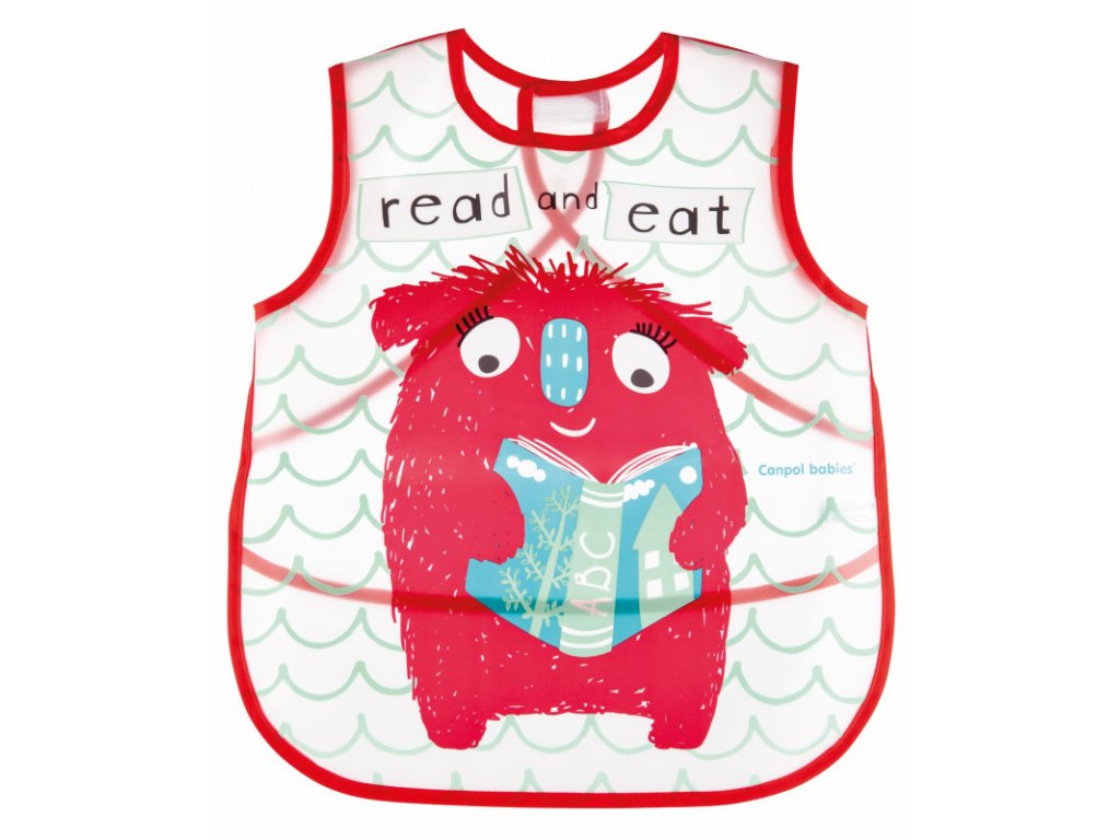 Canpol babies Plastový podbradník/zásterka s vreckom Monsters - červená