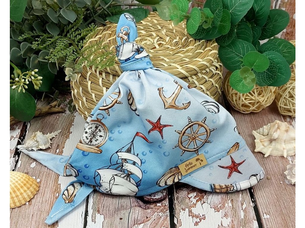 Detská bavlnená šatka so šiltom na zaväzovanie, Premium Baby Nellys, kormidlo