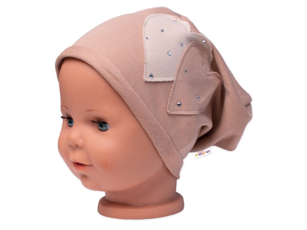 Dětská čepice bavlna, Srdíčka s kamínky, Baby Nellys, cappuccino