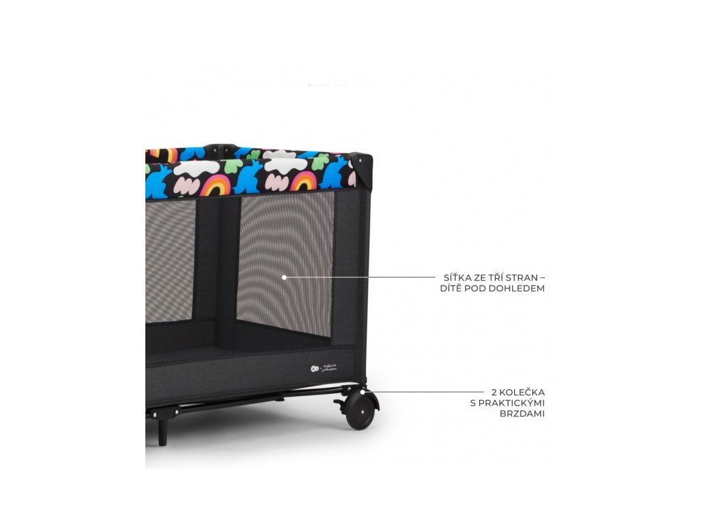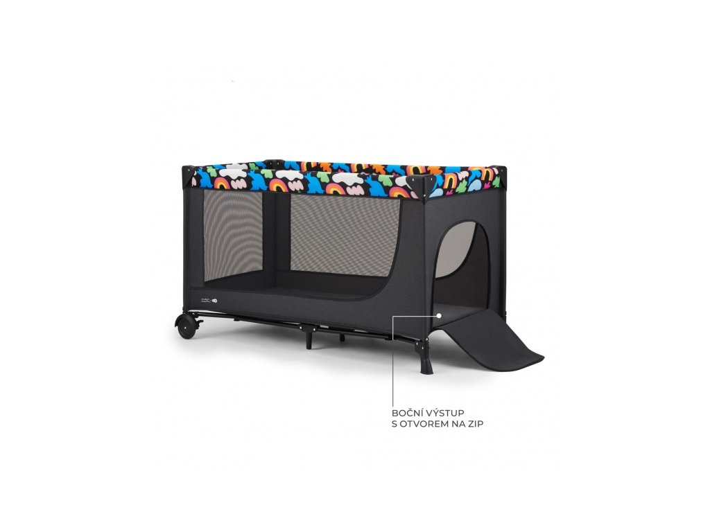 Moderná cestovná postieľka, ktorá zároveň spĺňa funkciu ohrádky. Konštrukcia je vybavená systémom rýchleho skladania a rozkladania a dvojitým zabezpečením pred zložením. Postieľka sa ľahko prenáša vďaka pohodlnej taške.