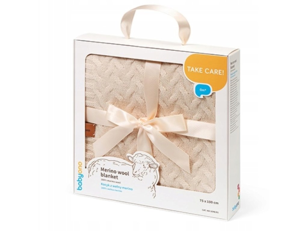 Balenie: pevná krabička s okienkom, deka vo vnútri previazaná stuhou – ideálny darček.