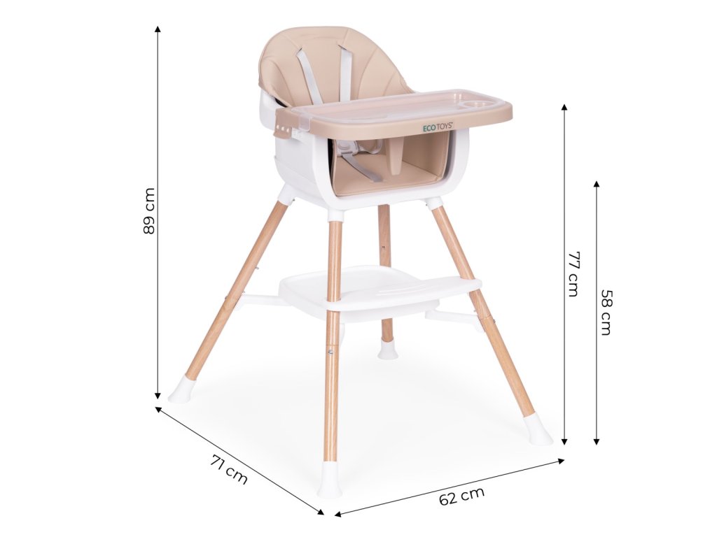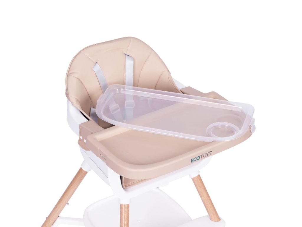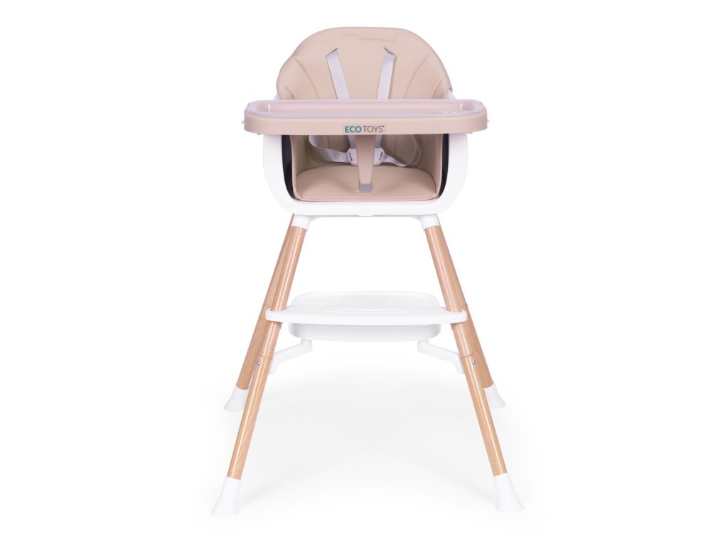 Detská jedálenská stolička ECOTOYS 2v1 – vysoká stolička aj sedadlo na stoličku.