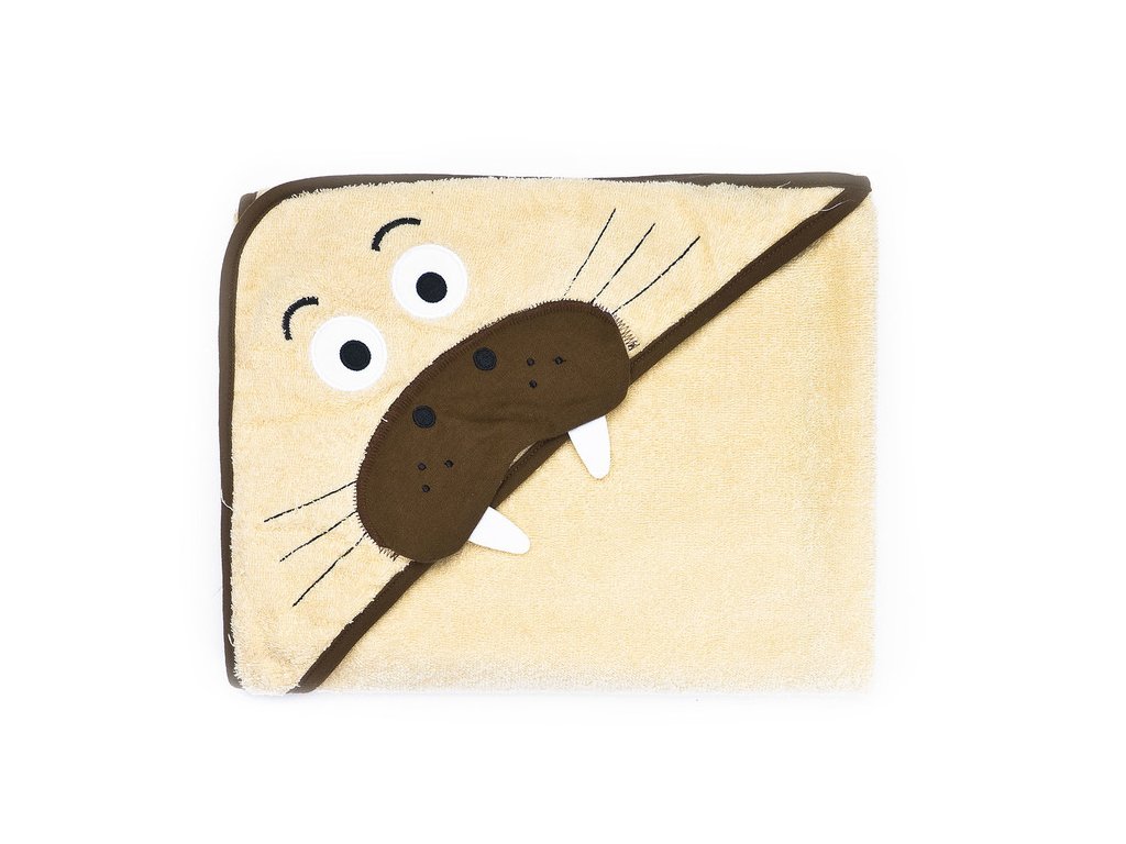 Detská osuška 100x100cm, froté bavlna, Mrož, béžová