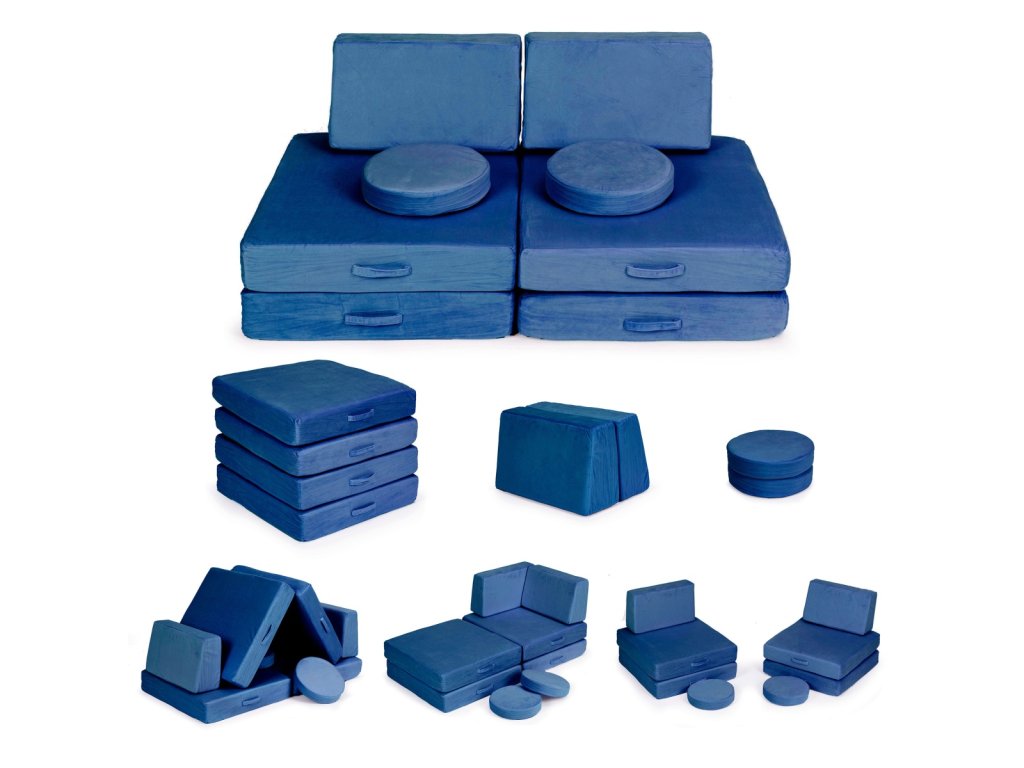 Detská veľká modulárna skladacia pohovka, 8 mäkkých vankúšov - modrá