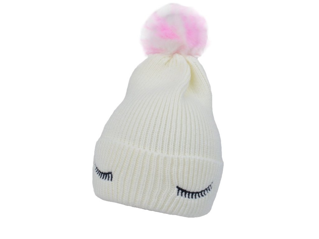 Detská zimná čiapka s brmbolcom Eyes, Baby Nellys - biela, veľ. 46-50 cm