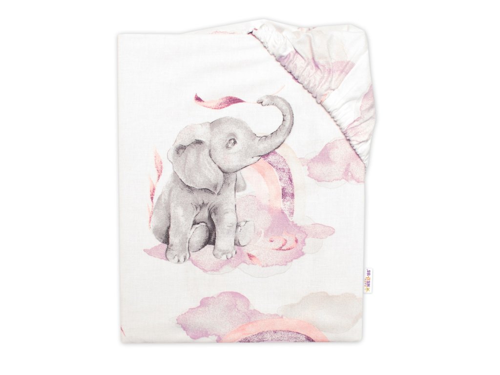 Dětské bavlněné prostěradlo do postýlky Baby Nellys, Slon a duha, růžová/bílá