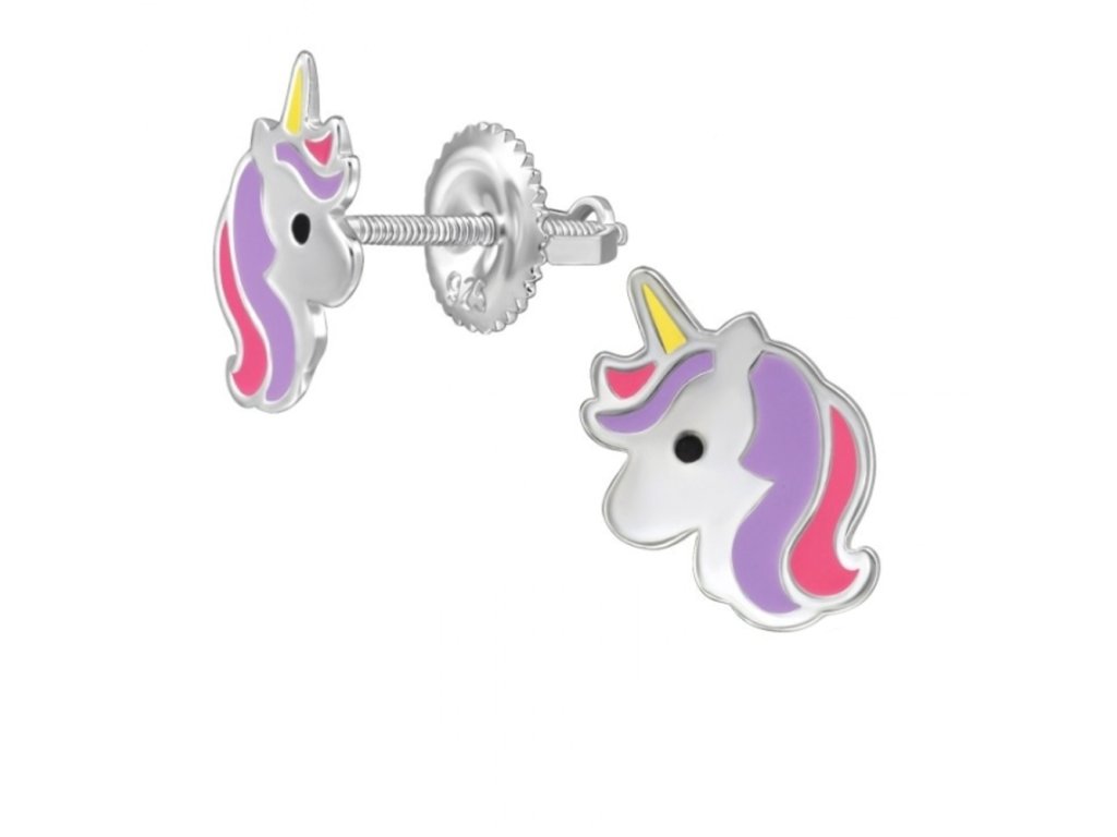 Detské strieborné náušničky Jednorožec, so skrutkovacou puzetou