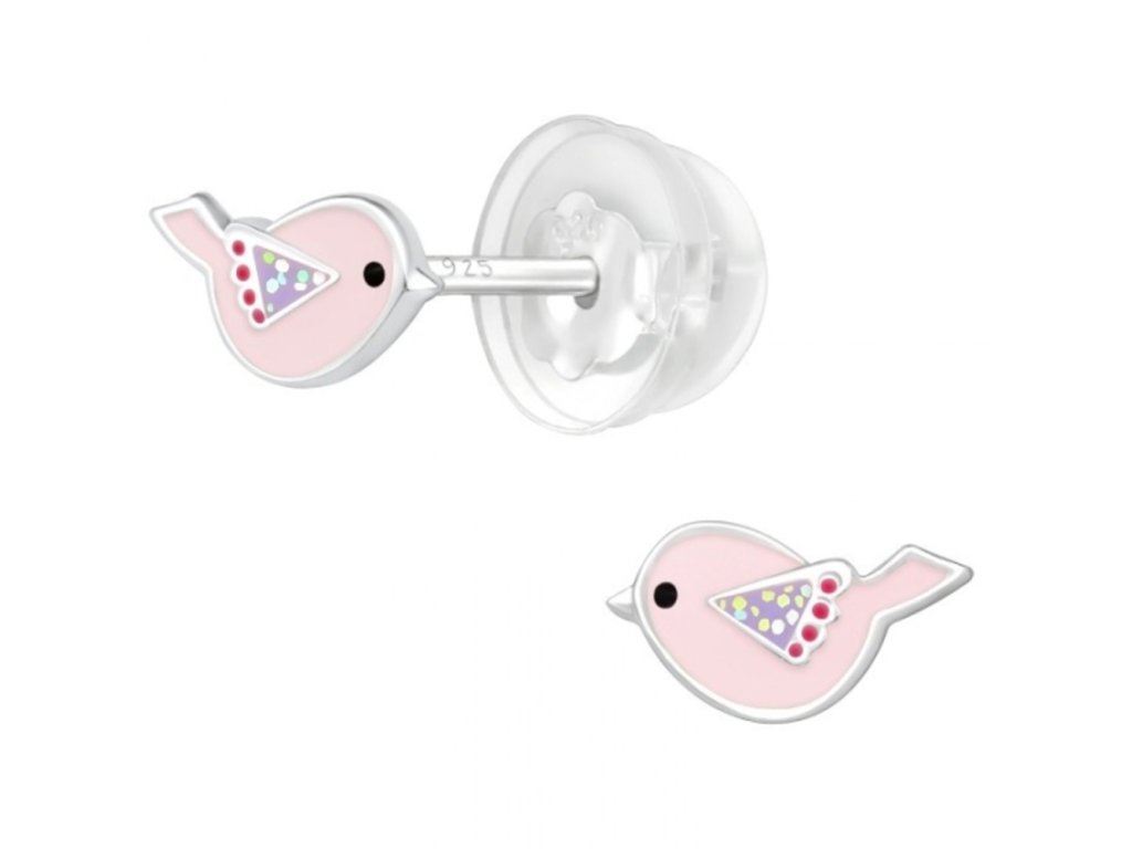 Detské strieborné náušničky premium Vtáčik ružový, puzetové