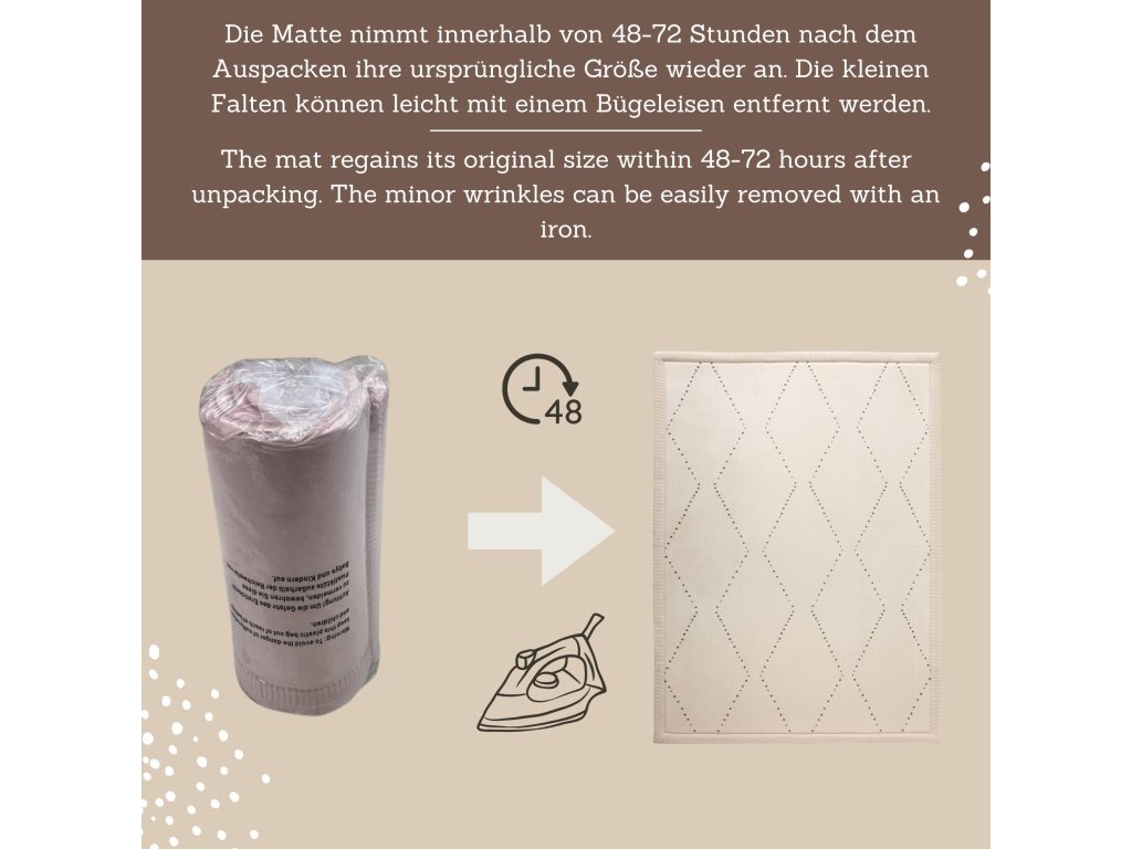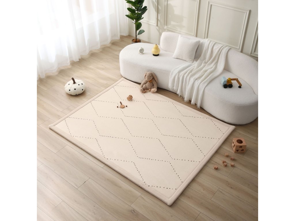 Detský koberec Chevron 2 x 1.5 m Bezpečné a pohodlné miesto na hranie Detský koberec Chevron je skvelým miestom pre deti na hranie, lezenie aj oddych. Má tri vrstvy – mäkký koralový zamat, pohodlnú elastickú pamäťovú penu a protišmykovú podložku, ktoré zaručia bezpečné a pohodlné hranie na zemi. Pamäťová pena je hrubá 2,5 cm a rýchlo sa vracia do pôvodného tvaru, čo je výhodou oproti lacnejším kobercom. S rozmermi 200 x 150 x 2,5 cm je dostatočne veľký nielen na detské hry, ale aj na jogu alebo relax.Štýlový a praktický doplnok do domácnosti Detský koberec s moderným vzorom dokonale zapadne do vašej obývačky alebo detskej izby a dodá pocit harmónie a pohodlia. Jeho praktický dizajn umožňuje jednoduchú starostlivosť a ľahkú údržbu – stačí ho povysávať alebo utrieť vlhkou handričkou. Navyše, je vyrobený bez škodlivých látok ako sú BPA či ftaláty, takže si môžete byť istí, že vaše dieťa bude v bezpečí.