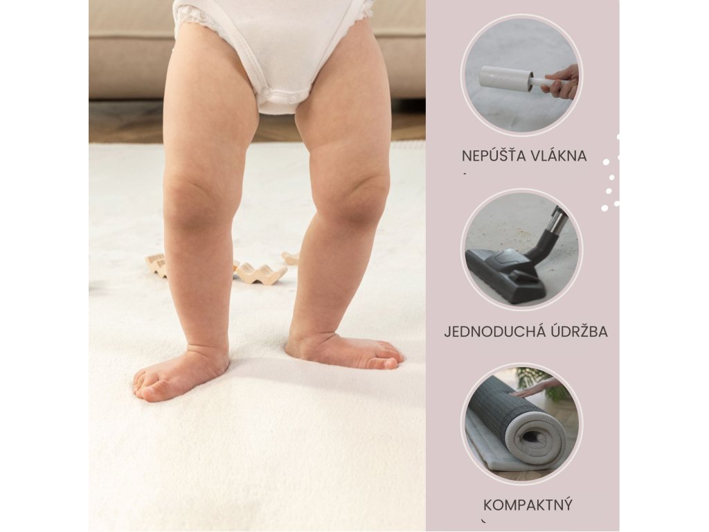 Detský koberec Light Grey 1.7 x 1.2 m Bezpečné a pohodlné miesto na hranie Detský koberec Light Grey je skvelým miestom pre deti na hranie, lezenie aj oddych. Má tri vrstvy – mäkký koralový zamat, pohodlnú elastickú pamäťovú penu a protišmykovú podložku, ktoré zaručia bezpečné a pohodlné hranie na zemi. Pamäťová pena je hrubá 2 cm a rýchlo sa vracia do pôvodného tvaru, čo je výhodou oproti lacnejším kobercom. S rozmermi 170 x 120 x 2 cm je dostatočne veľký nielen na detské hry, ale aj na jogu alebo relax.Štýlový a praktický doplnok do domácnosti Detský koberec sivej farby krásne doplní váš interiér. Jeho praktický dizajn umožňuje jednoduchú starostlivosť a ľahkú údržbu – stačí ho povysávať alebo utrieť vlhkou handričkou. Navyše, je vyrobený bez škodlivých látok ako sú BPA či ftaláty, takže si môžete byť istí, že vaše dieťa bude v bezpečí.