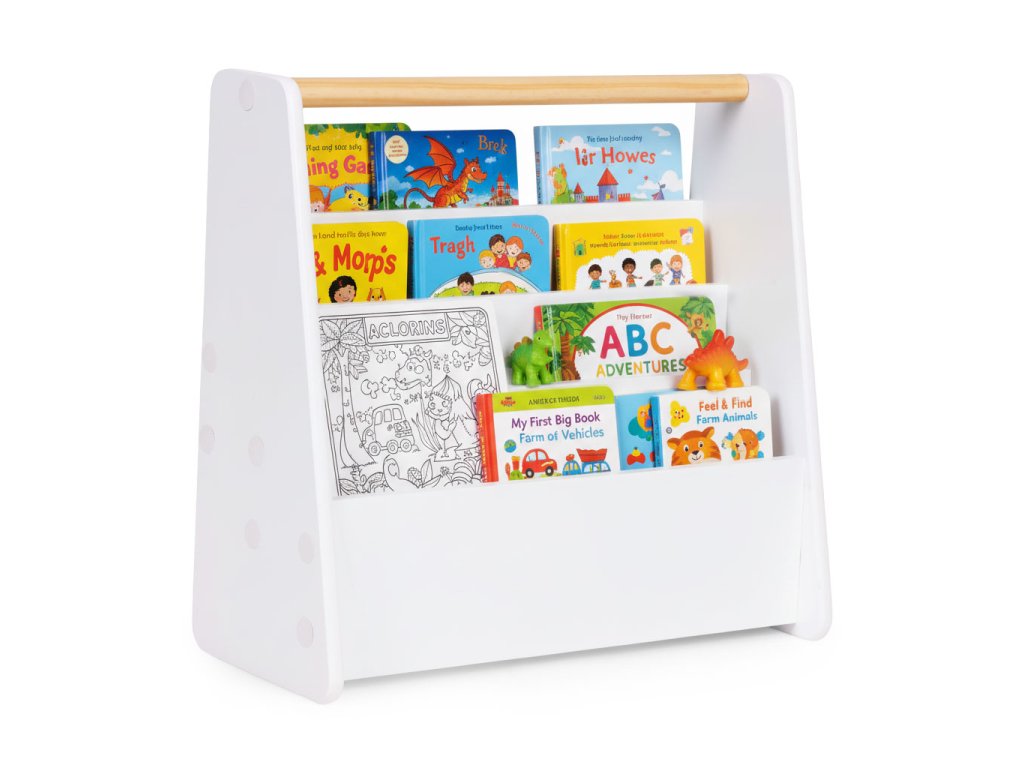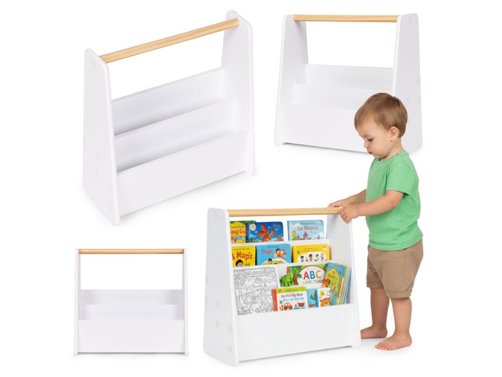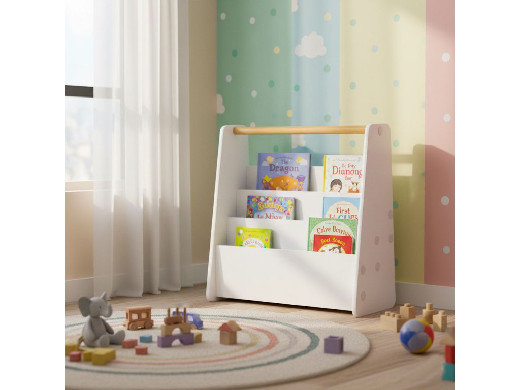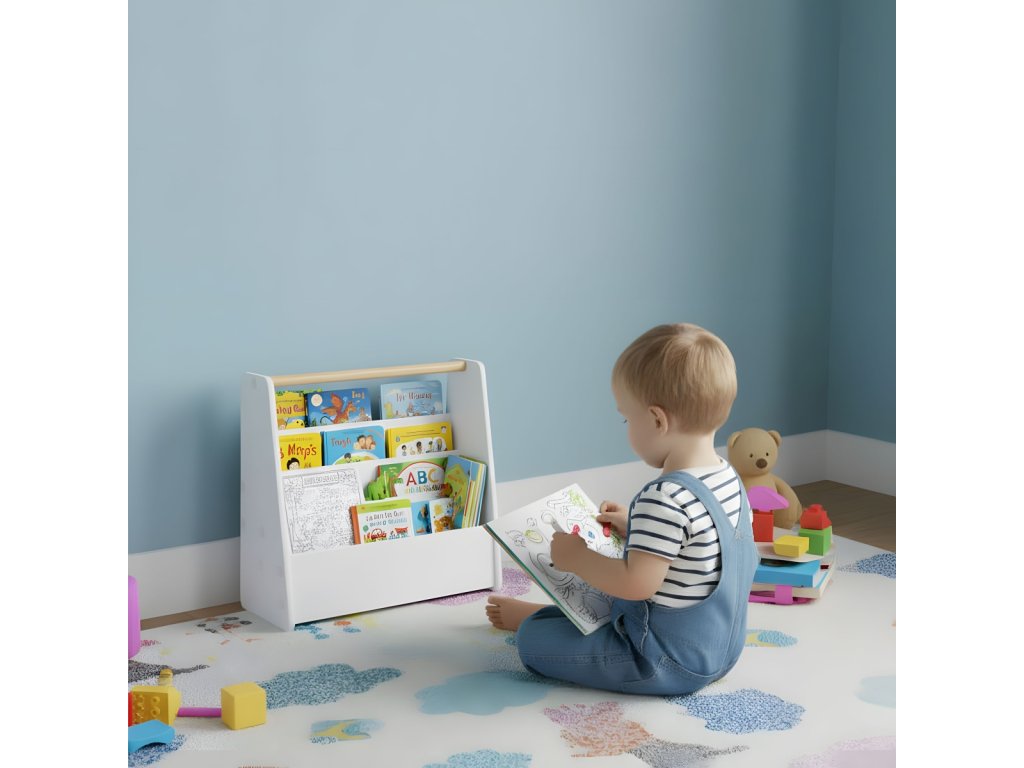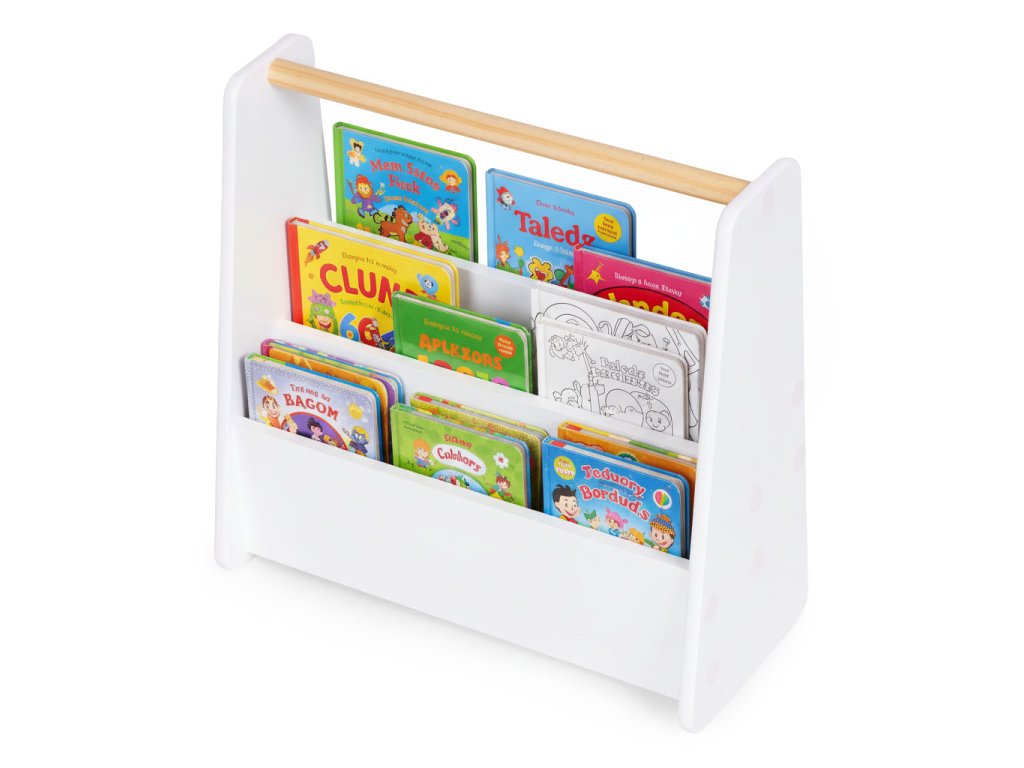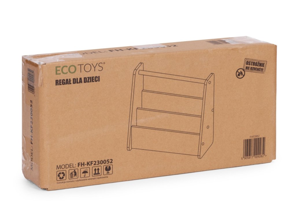 Detská knižnica ECOTOYS je ideálne riešenie na ukladanie knižiek, omaľovánok a drobných hračiek v detskej izbe. Vďaka premyslenej konštrukcii s trojstupňovým vystavením si dieťa ľahko vyberie svoje obľúbené tituly, čo podporuje jeho samostatnosť a rozvíja záujem o čítanie.