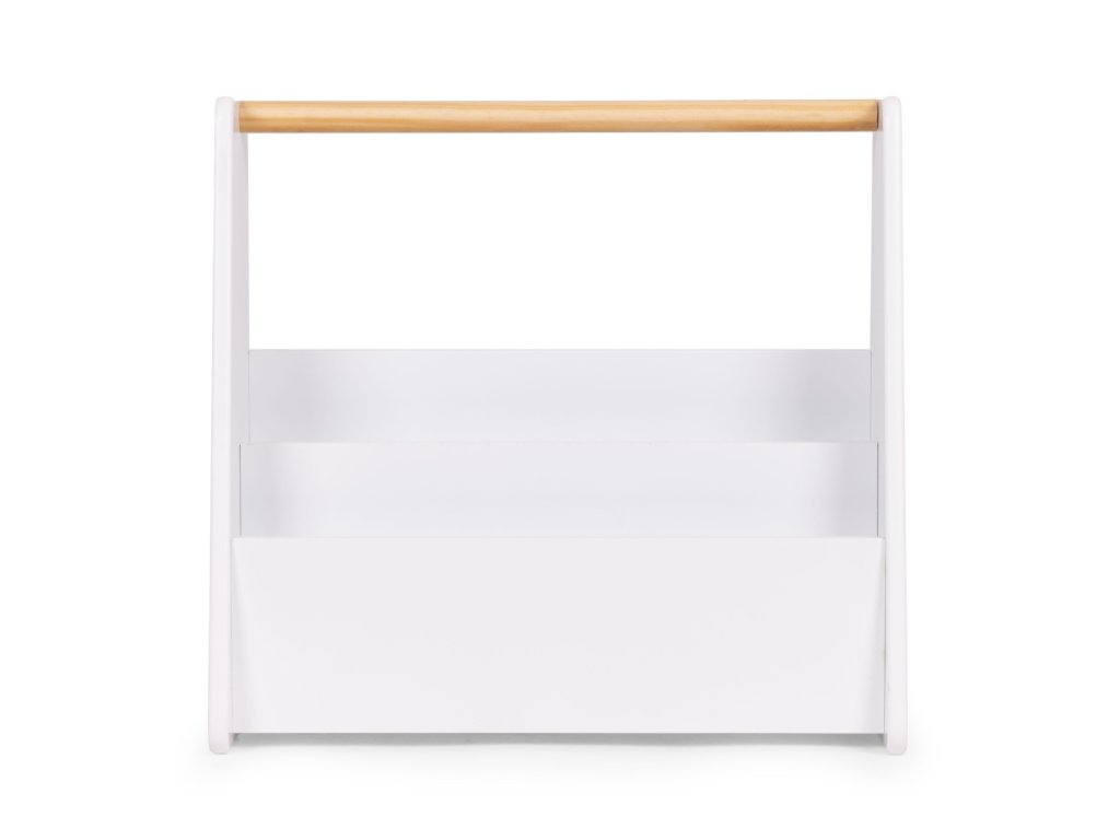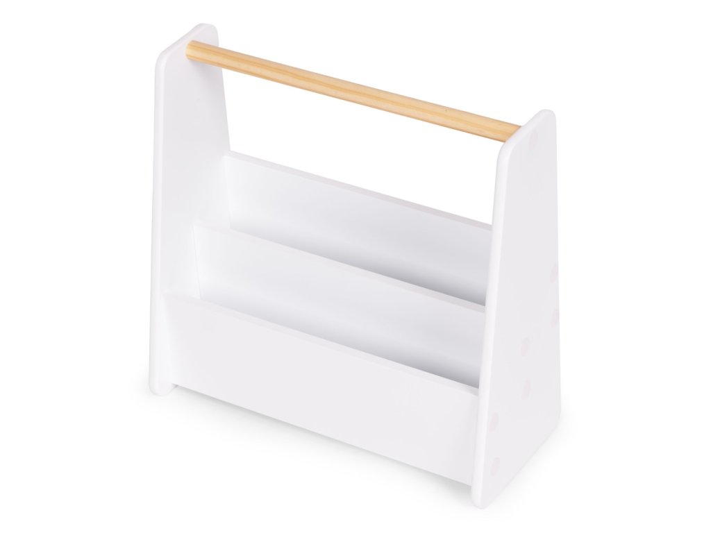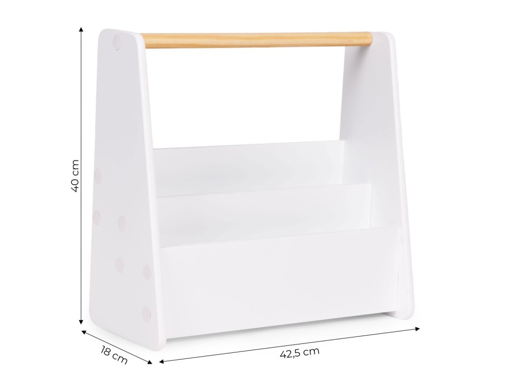 Tri praktické priehradky umožňujú prehľadne uložiť knižky, omaľovánky aj drobné hračky. Vďaka šikmému usporiadaniu sú obálky dobre viditeľné, čo uľahčuje výber a podporuje záujem o obľúbené tituly.