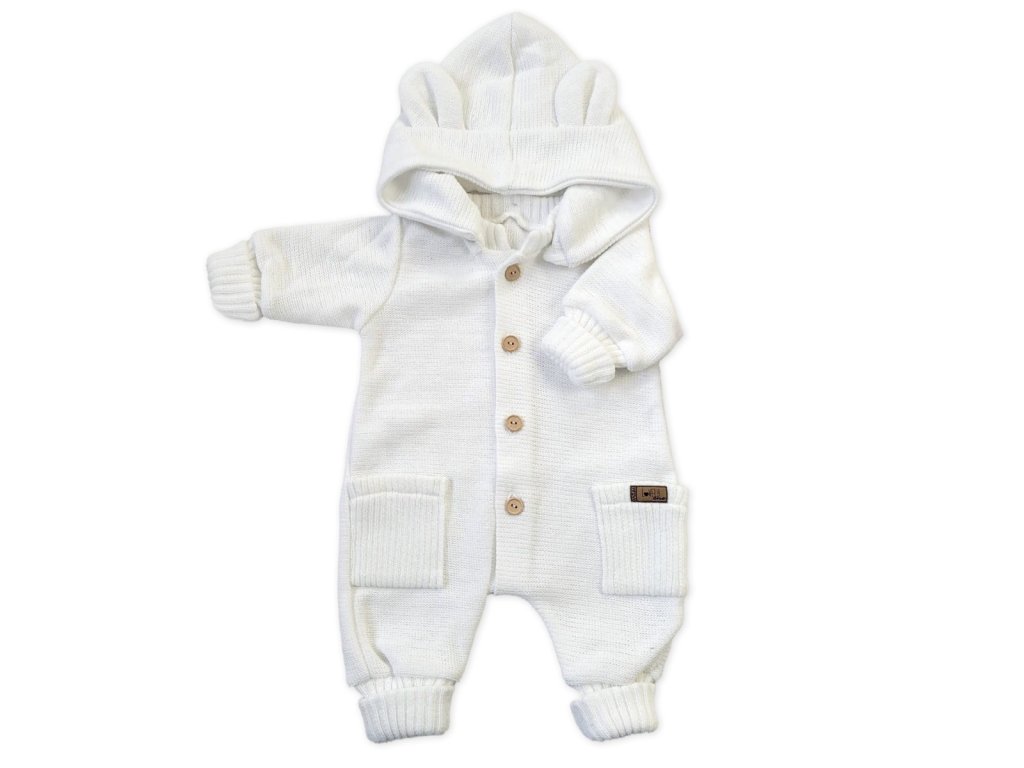 Dětský pletený overálek s odepínací kapucí - kokosově bílý