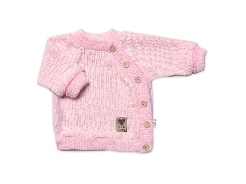 Detský pletený svetrík s gombíkmi, zap. bokom, Handmade Baby Nellys, ružový