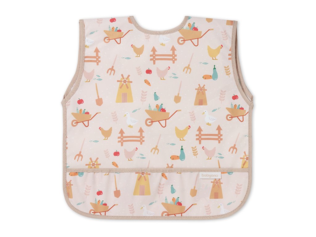 Detský podbradník, zásterka s vreckom Farmár, béžová