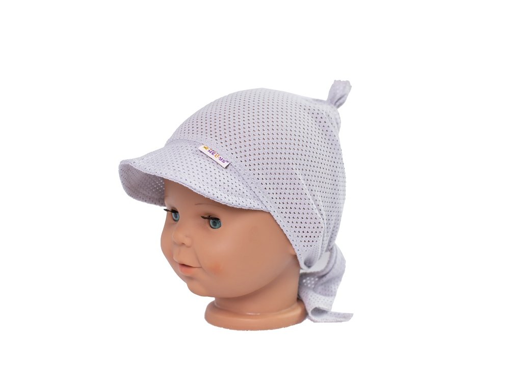 Dětský síťkovaný šátek s kšiltem na zavazování Uzlík, šedý
