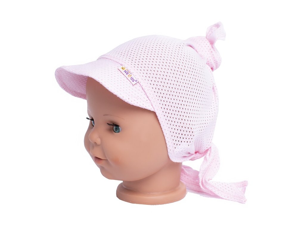 Dětský síťkovaný šátek s kšiltem na zavazování Uzlík Baby Nellys, růžový