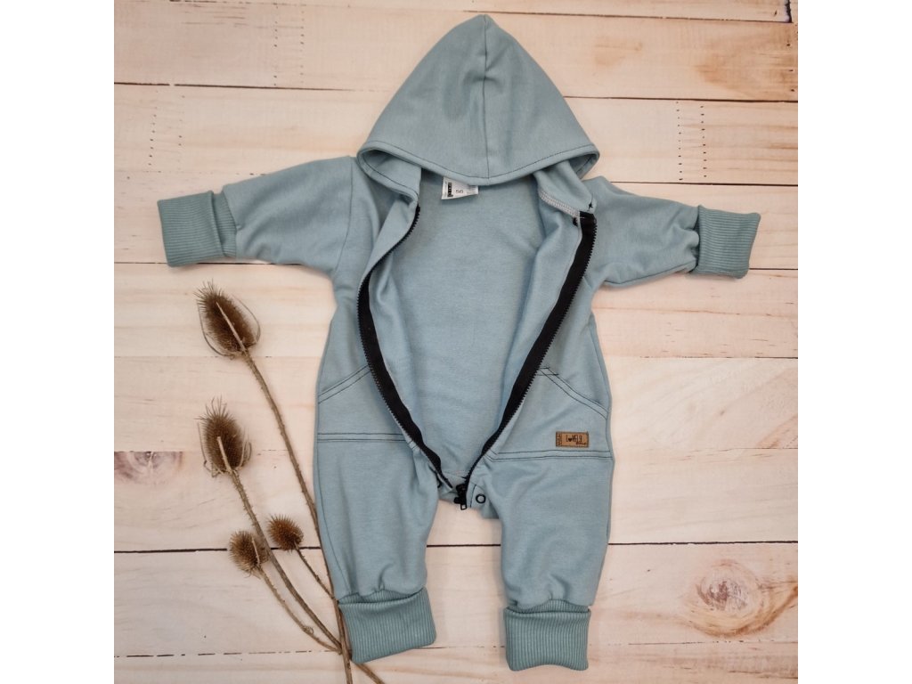 Dětský teplákový overal s prodlouženými náplety, tm. mátová