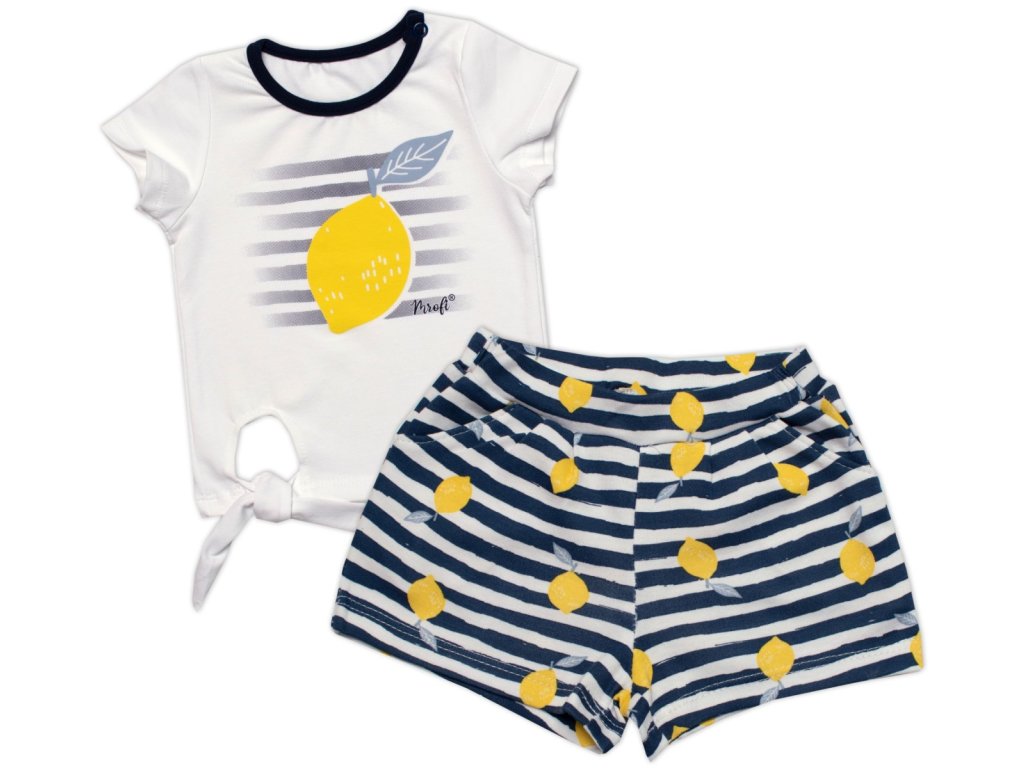 Dívčí triko+kraťasy 2D sada, Citrónky, Mrofi, bílá/modrá