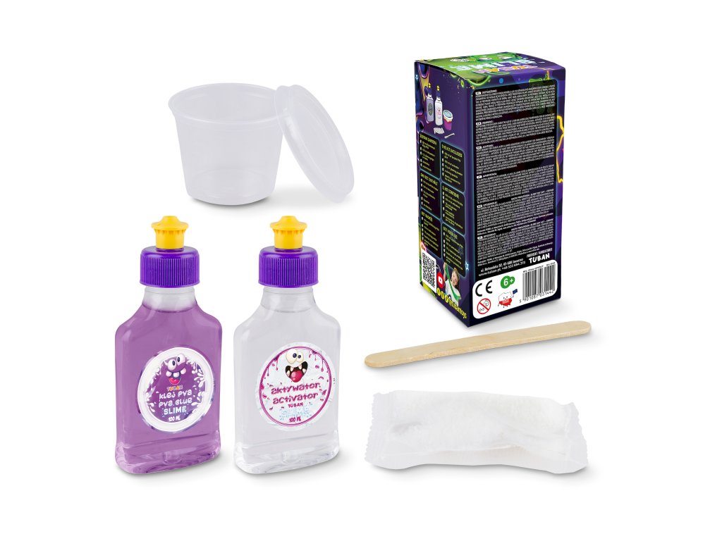 DIY Slime Sada na výrobu slizu Glow in the dark Ohúrte svoje deti slizom svietiacim v tme Skvelá aktivita pre deti, ktoré radi experimentujú. V tejto sade nájdete všetko, čo na výrobu kvalitného slizu potrebujete. Vďaka špeciálnemu prášku bude vytvorený sliz v tme žiariť. Hra so slizom je ideálna na rozvoj jemnej motoriky, zmyslového vnímania a podporuje u detí kreativitu.Sada obsahuje:100 ml fialového PVA lepidla,100 ml aktivátora,1,5 g svietiaceho prášku,špachtľu,nádobu.Zábavný, edukačný, aj relaxačný Pre deti môže byť manipulácia so slizom upokojujúca a relaxačná. Je to skvelý spôsob, ako si oddýchnuť a znížiť stres po náročnom dni. Objavte všetky DIY slizy a hotové Jiggly slimes rôznych farieb a vôní.Sliz je vyrobený z bezpečných a netoxických materiálov, ktoré sú šetrné k životnému prostrediu, neobsahujú borax. Po hre odporúčame sliz uložiť do priloženej nádobky a dobre uzavrieť.Senzorická hra umožňuje deťom objavovať svet okolo seba prostredníctvom zmyslov Hranie s rôznymi textúrami, farbami a vôňami nielenže stimuluje ich zmyslové vnímanie, ale taktiež podporuje ich kognitívny vývoj, jemnú motoriku a emocionálnu inteligenciu. S produktmi značky Tuban môžu deti preskúmavať rôzne senzorické podnety a objavovať nové spôsoby učenia a zábavy.