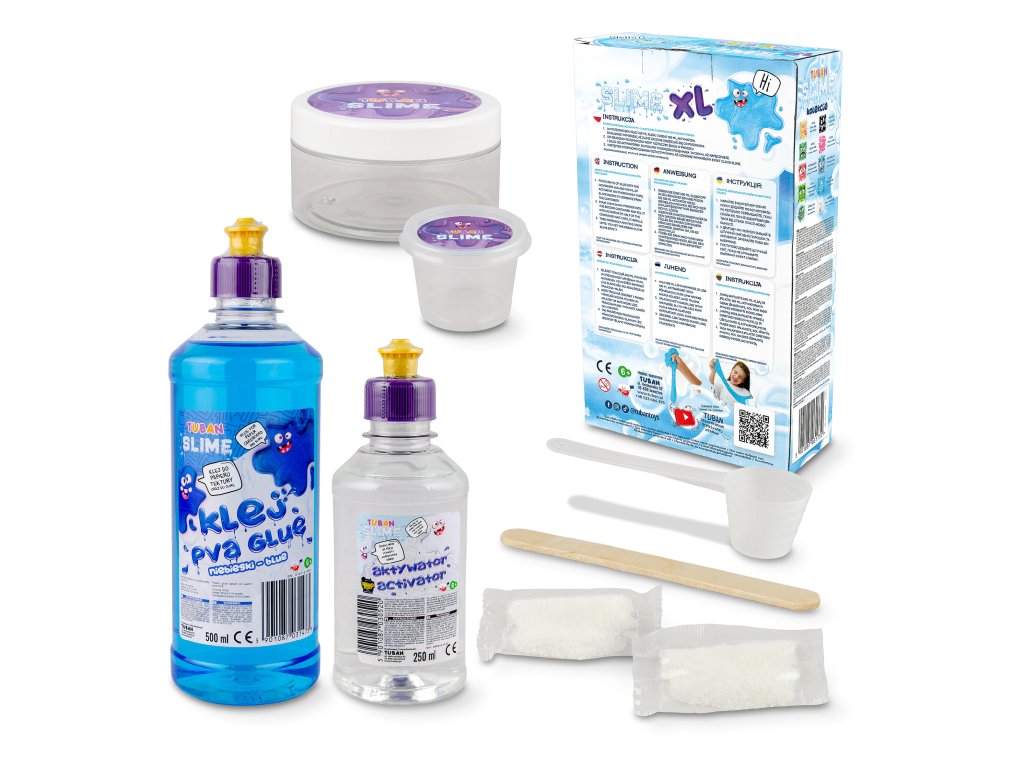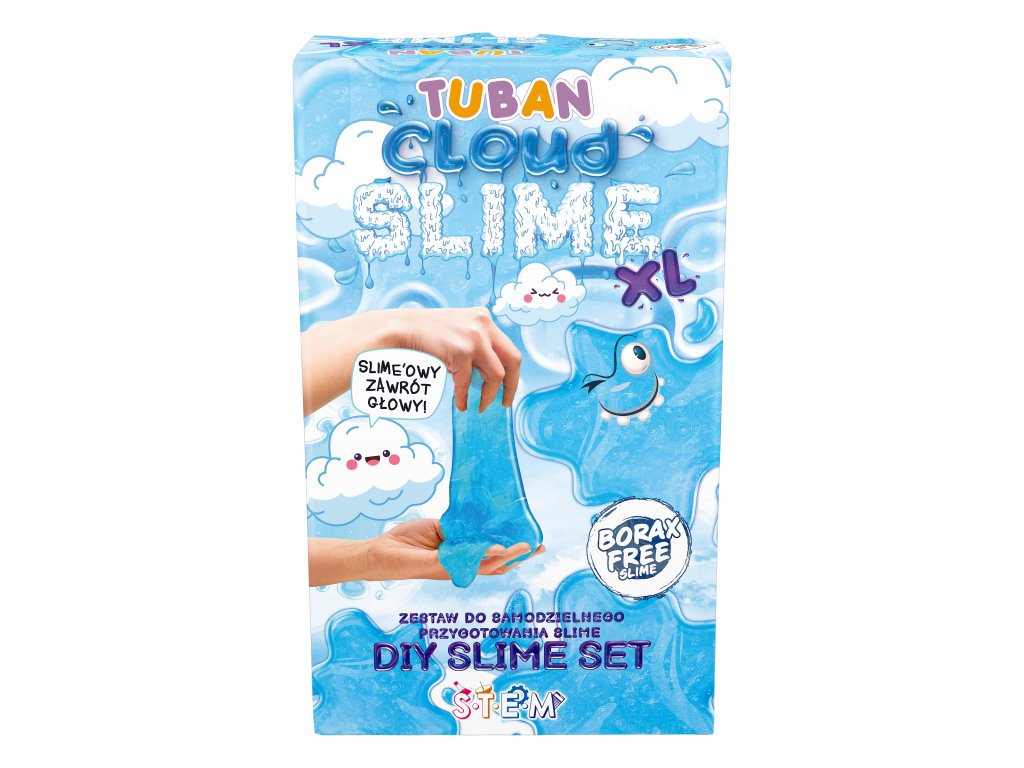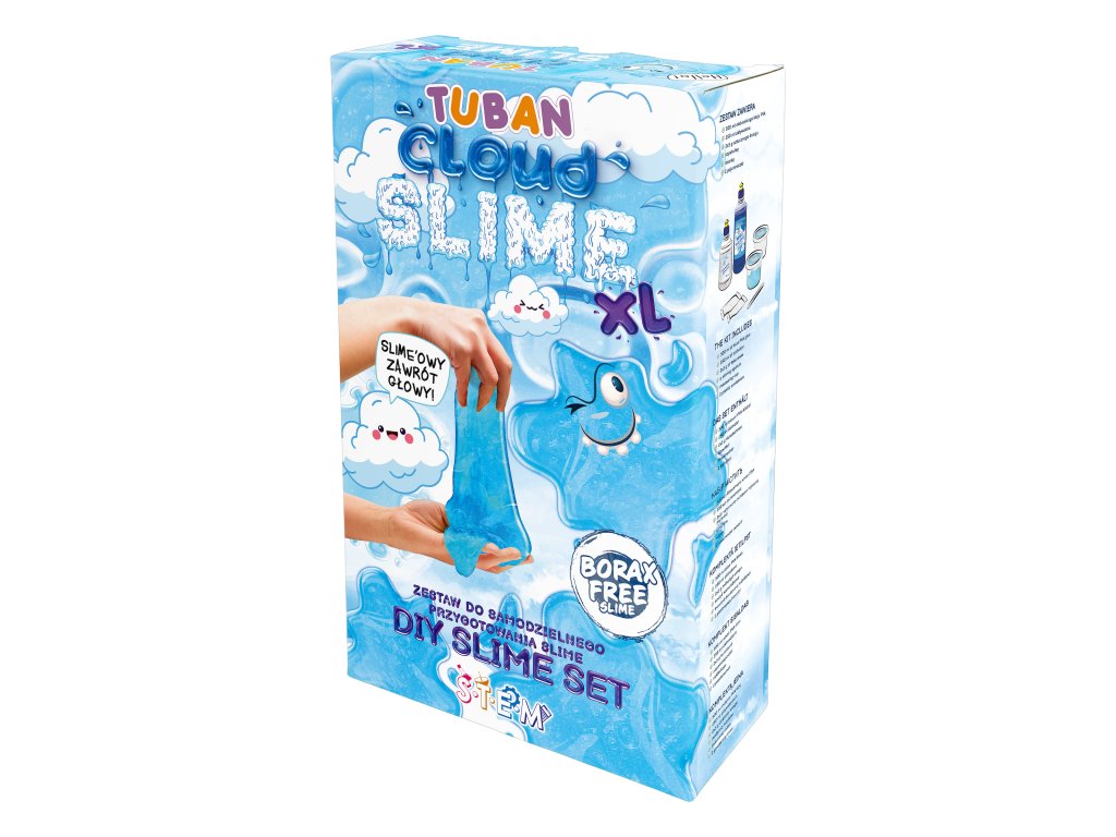 DIY Slime Sada na výrobu slizu Obláčik XL XL sada pre ešte väčšie množstvo nadýchaného slizu ako obláčik Skvelá aktivita pre deti, ktoré radi experimentujú. V tejto sade nájdete všetko, čo na výrobu kvalitného slizu potrebujete. Všetko ešte vo väčších množstvách! Využite sadu na hranie pre viac detí alebo si vytvorte sliz viackrát. Vďaka špeciálnej prísade - umelému snehu bude mať sliz neuveriteľnú jemnosť a nadýchanosť a bude vám pripomínať obláčik. Hra so slizom je ideálna na rozvoj jemnej motoriky, zmyslového vnímania a podporuje u detí kreativitu.Sada obsahuje:500 ml modrého PVA lepidla,250 ml aktivátora,6 g umelého snehu,špachtľu,odmerku,nádobu.Zábavný, edukačný, aj relaxačný Pre deti môže byť manipulácia so slizom upokojujúca a relaxačná. Je to skvelý spôsob, ako si oddýchnuť a znížiť stres po náročnom dni. Objavte všetky DIY slizy a hotové Jiggly slimes rôznych farieb a vôní.Sliz je vyrobený z bezpečných a netoxických materiálov, ktoré sú šetrné k životnému prostrediu, neobsahujú borax. Po hre odporúčame sliz uložiť do priloženej nádobky a dobre uzavrieť.Senzorická hra umožňuje deťom objavovať svet okolo seba prostredníctvom zmyslov Hranie s rôznymi textúrami, farbami a vôňami nielenže stimuluje ich zmyslové vnímanie, ale taktiež podporuje ich kognitívny vývoj, jemnú motoriku a emocionálnu inteligenciu. S produktmi značky Tuban môžu deti preskúmavať rôzne senzorické podnety a objavovať nové spôsoby učenia a zábavy.