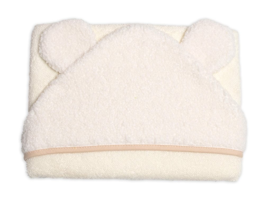 Dojčenská froté osuška s kapucňou a uškami Boucle 80x80cm - smetanová